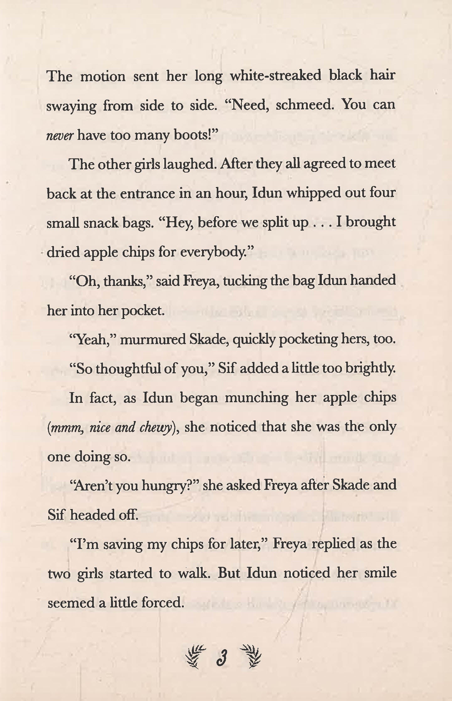 Twelve-year-old Idun is the goddess of youth, and her magical and deliciously sweet golden apples are what keep all of the academy’s gods and goddesses healthy and youthful. They grow year-round—even in winter snow—in one very special grove in Asgard.