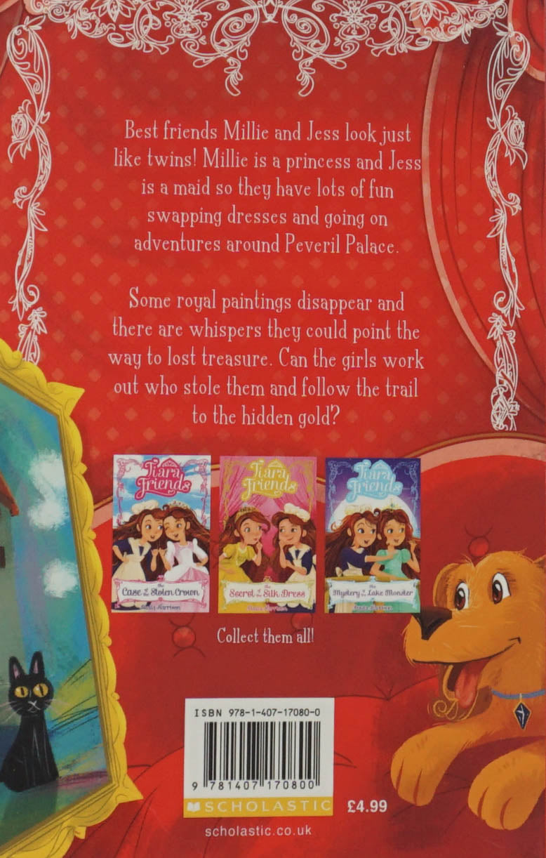 The fourth title in the illustrated chapter book series, Tiara Friends - perfect for growing children's reading skills and confidence. Best friends Millie and Jess look just like twins! Millie is a princess and Jess is a maid so they have lots of fun swapping dresses and going on adventures around Peveril Palace. When a priceless painting is stolen, can the girls work out why and who is responsible? COLLECT ALL THE TIARA FRIENDS BOOKS Case of the Stolen Crown (book 1) The Secreet of the Silk Dress (book 2) The Mystery of the Lake Monster (book 3) The Hunt for Hidden Treasure (book 4)