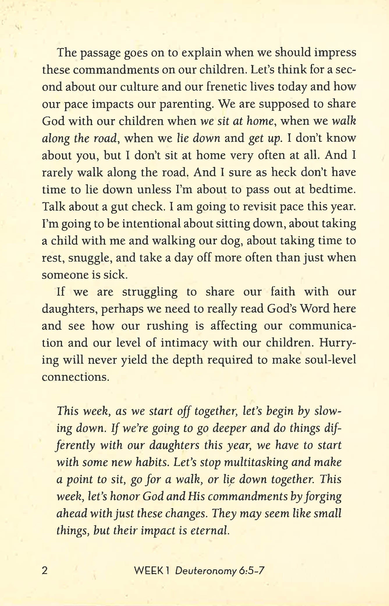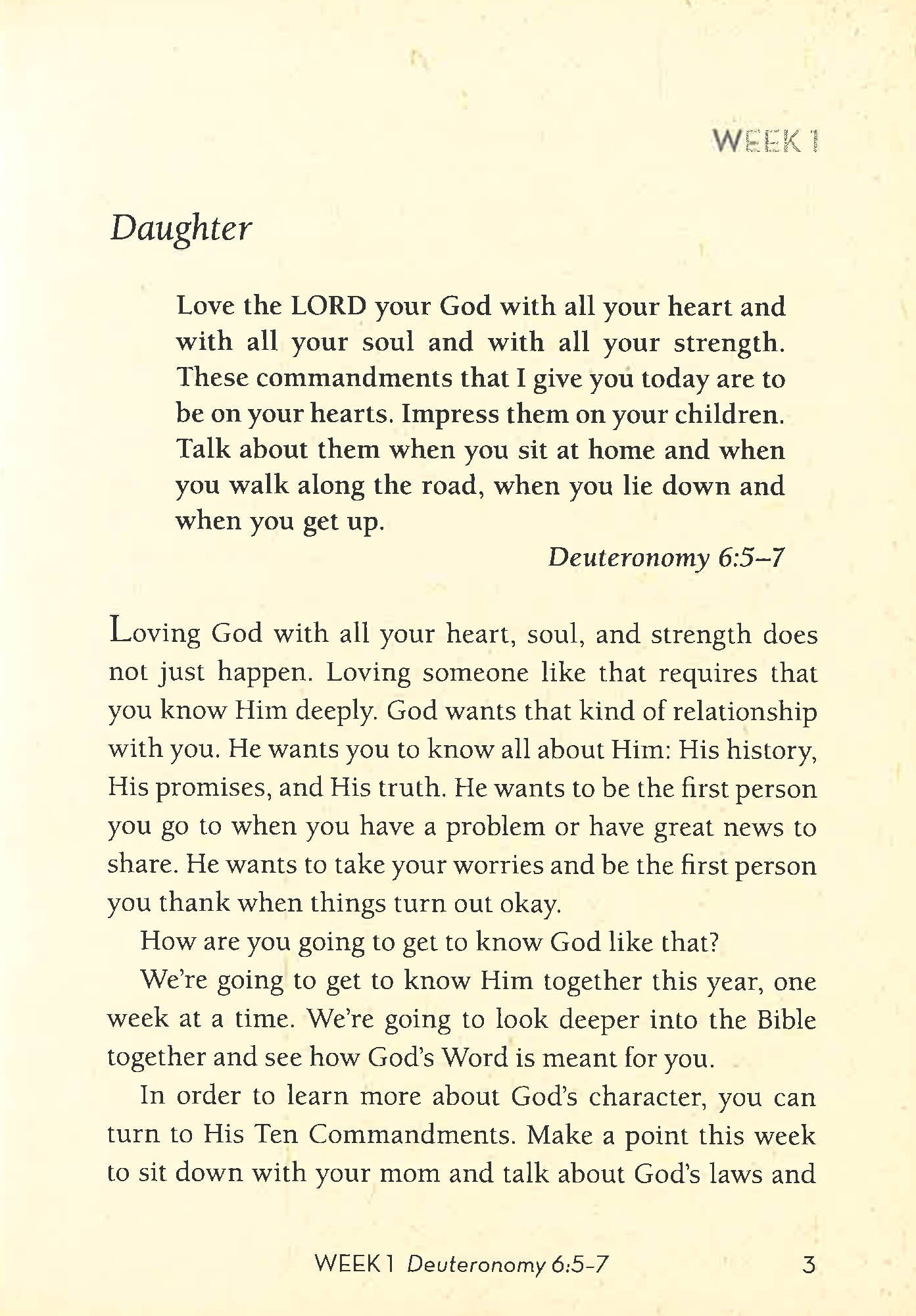 ''A cord of three strands is not quickly broken.'' - Ecclesiastes 4:12A mother and daughter relationship is one of the most important and defining relationships in life. Just like when we braid our daughter's hair, as we raise our girls we weave three strands together: our faith and their faith, together with God's love. If we can do this well, the cord is not easily broken.In this weekly devotional there are common themes supported by scripture, with one reading specifically for mothers, the other for daughters. Each week is intended to generate connection and conversation, with questions included to spark discussion.Topics include: Gossip, Body Image, Forgiveness, Contentment, Relationships, Purity, Comparison, Perfection, Healthy Friendships and many more!This year long journey together will deepen your faith, and your relationship in addition to offering introspection and personal growth for women of every age.
