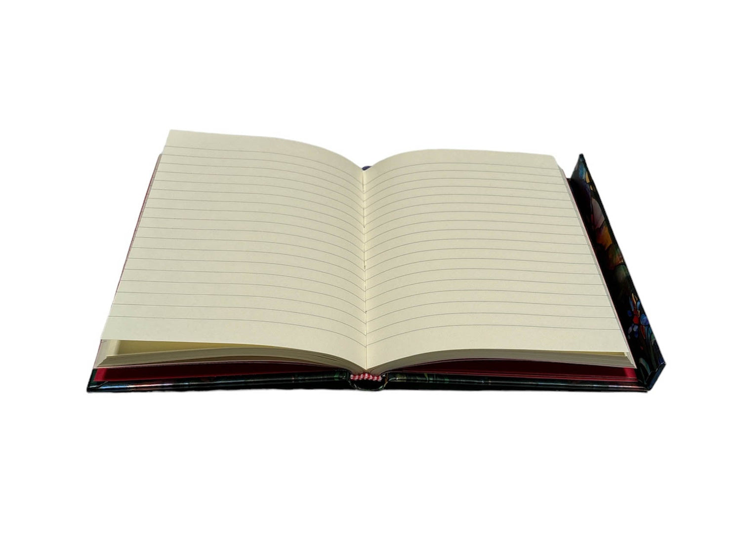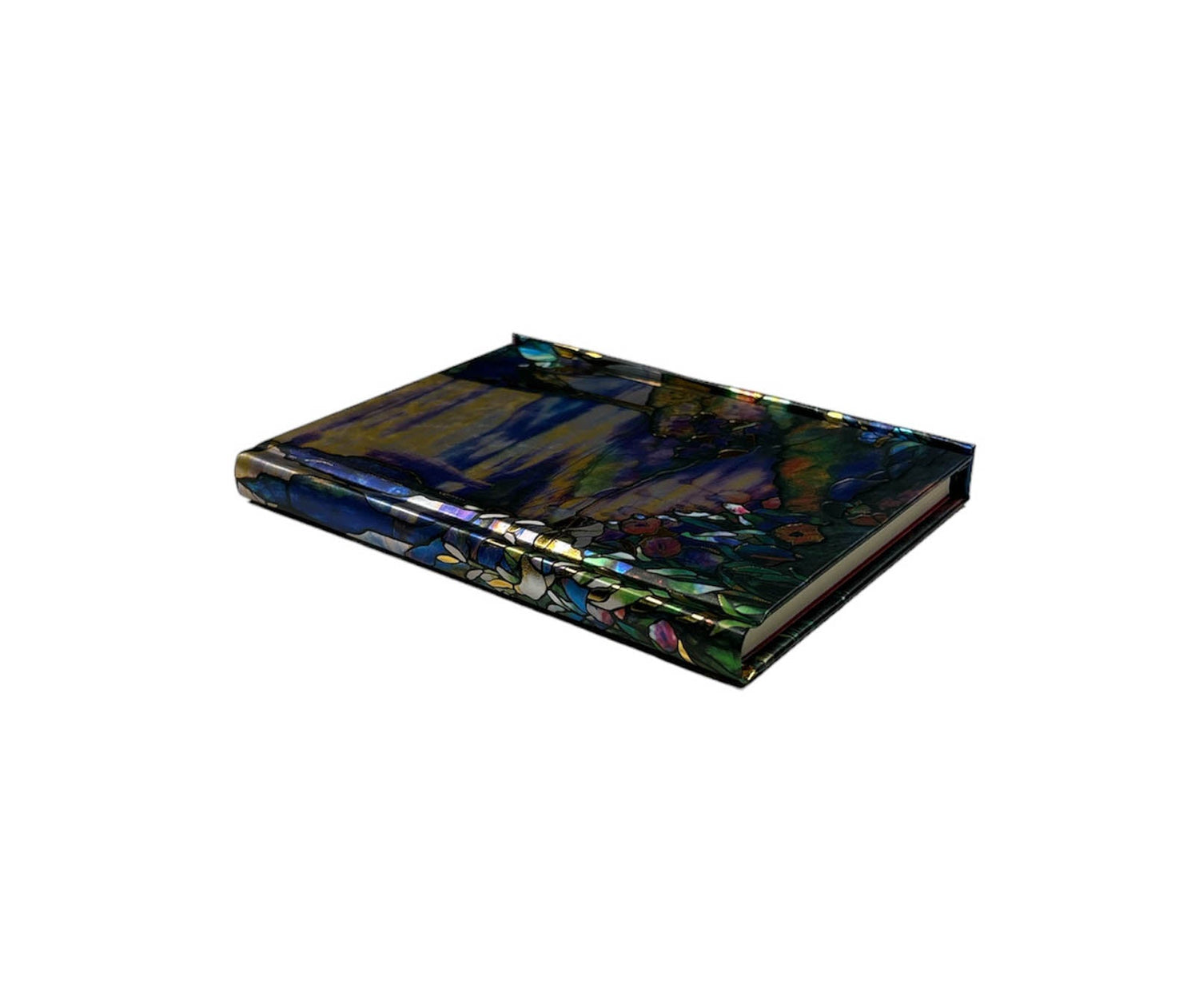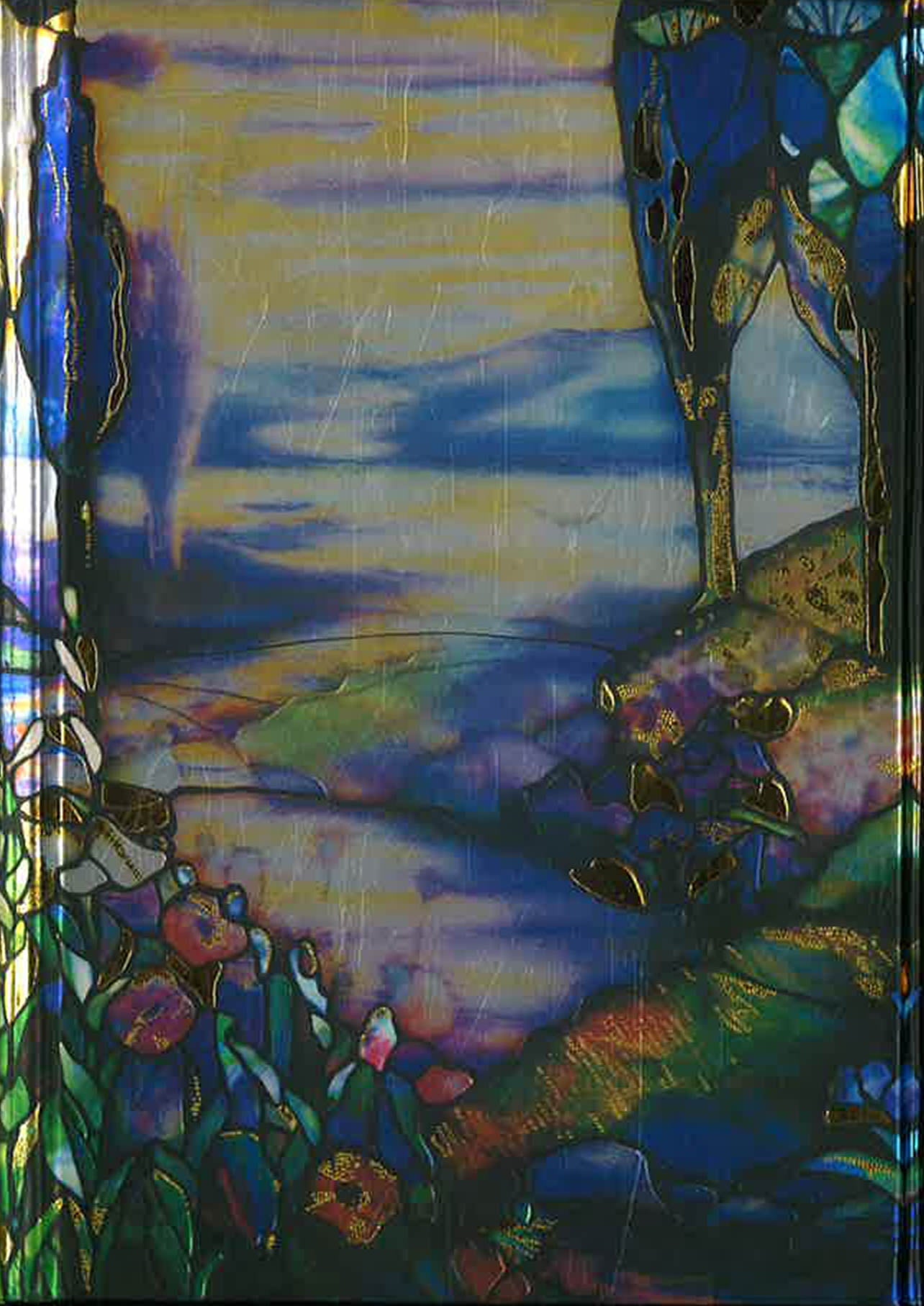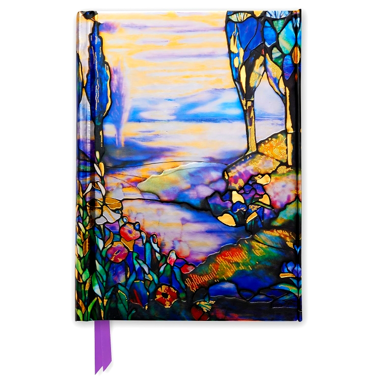 Part of a series of handy, luxurious Flame Tree Pocket Books. Combining high-quality production with magnificent fine art, the covers are printed on foil in five colours, embossed then foil stamped. And they’re delightfully practical: a pocket at the back for receipts and scraps, two bookmarks and a solid magnetic side flap. These are perfect for personal use, handbags and make a dazzling gift. This example features a beautiful Louis Comfort Tiffany design, A River Meandering from a Distant Mountain Range at Dusk, with Cypress and Lilies.