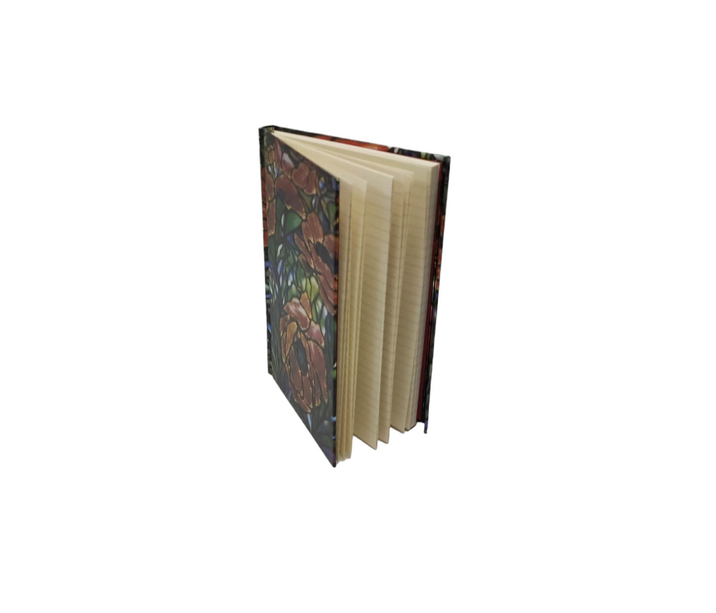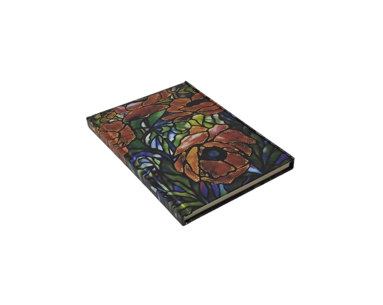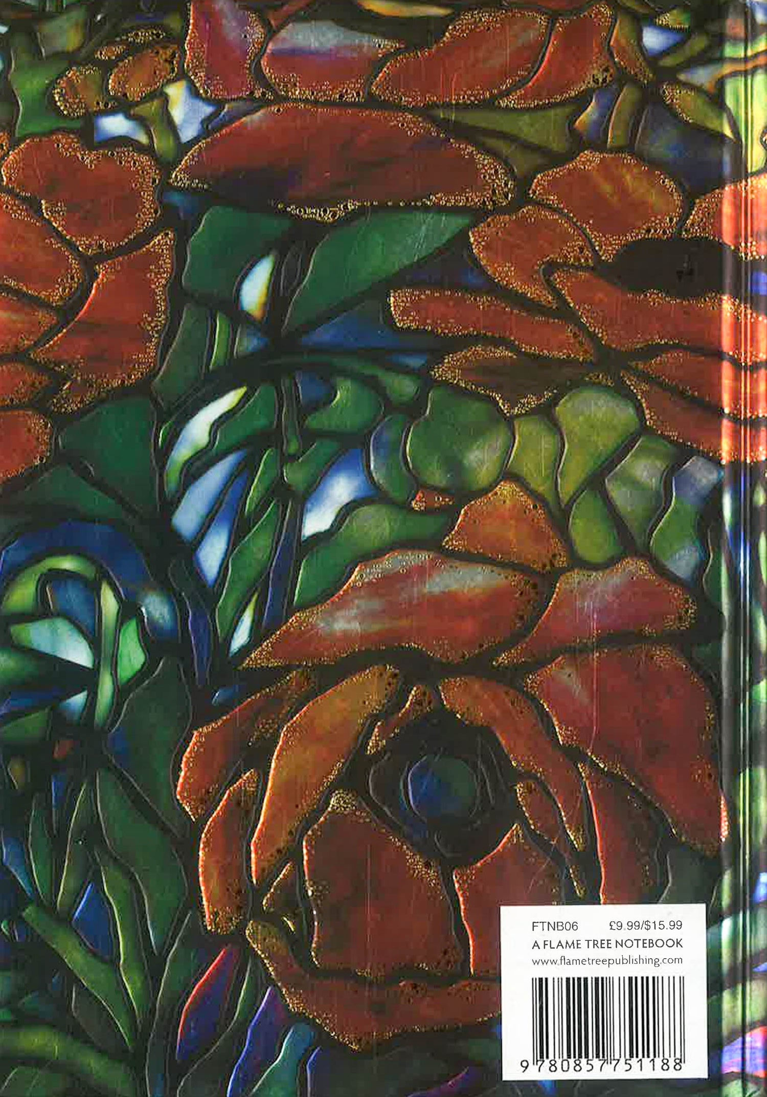 Part of a series of exciting and luxurious Flame Tree Notebooks. Combining high-quality production with magnificent fine art, the covers are printed on foil in five colours, embossed then foil stamped. And they're powerfully practical: a pocket at the back for receipts and scraps, two bookmarks and a solid magnetic side flap. These are perfect for personal use and make a dazzling gift. This example features one of Louis Comfort Tiffany's glorious poppy glass designs.