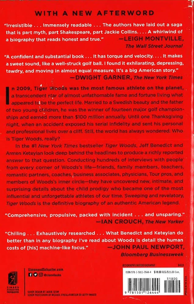 In 2009, Tiger Woods was the most famous athlete on the planet, a transcendent star of almost unfathomable fame and fortune living what appeared to be the perfect life. But it turned out he had been living a double life for years--one that exploded in the aftermath of a Thanksgiving night crash that exposed his serial infidelity and sent his personal and professional lives over a cliff. In this "searing biography of golf's most blazing talent" (GOLF magazine), Jeff Benedict and Armen Keteyian dig deep behind the headlines to produce a richly reported answer to the question that has mystified millions of sports fans for nearly a decade: who is Tiger Woods, really?