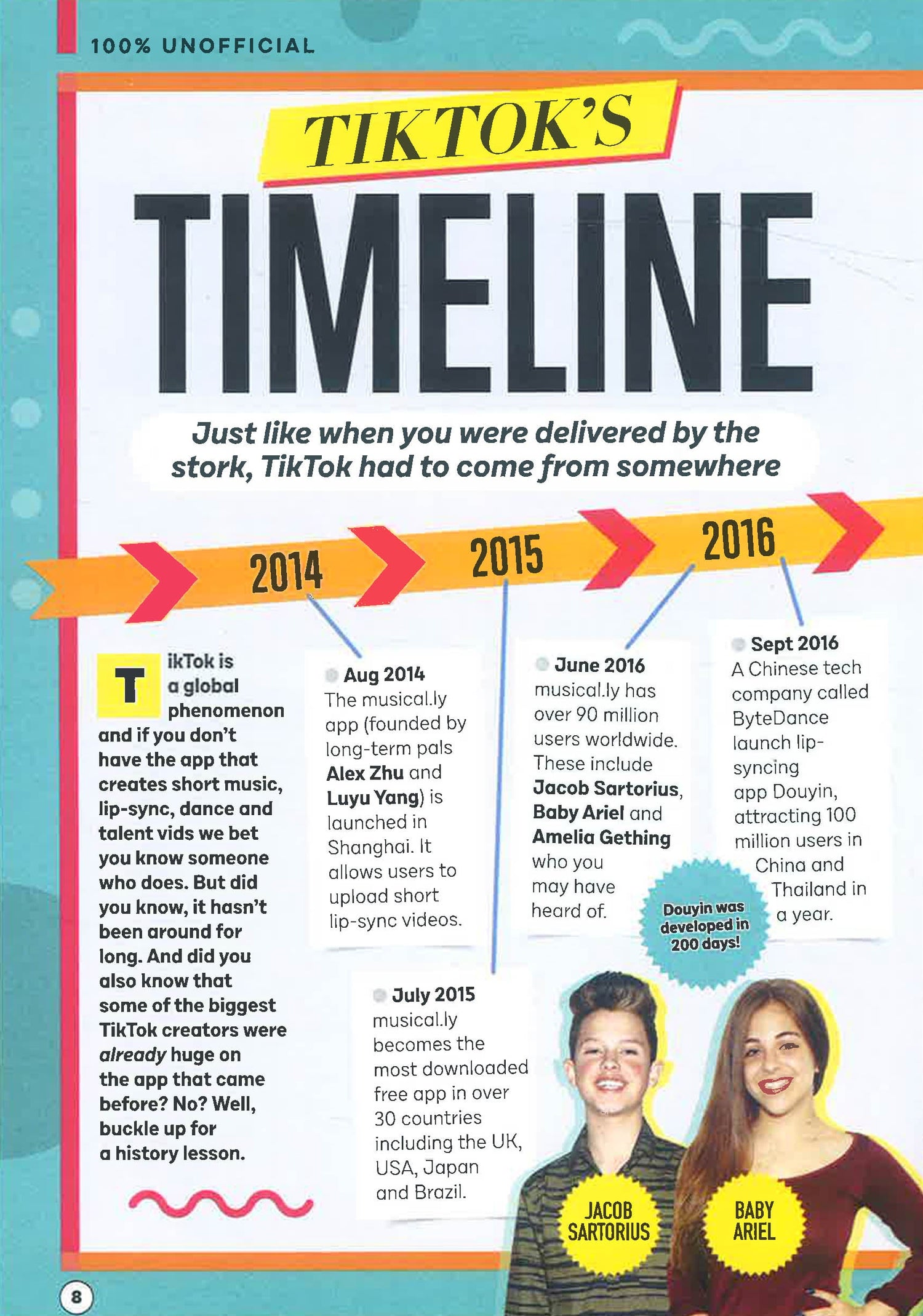 Discover everything you ever wanted to know about the dance-moving, lip-syncing legends of the Tik Tok world. Featuring bios of your favourite Tik Tok stars, Charli and Dixie D'Amelio, Zach King, Baby Ariel, Amelia Gething and more!