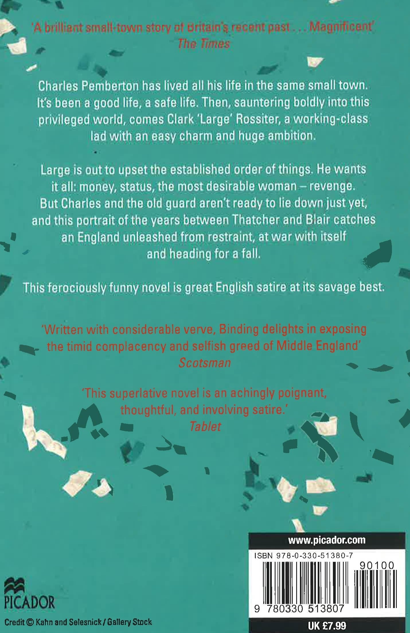 Charles Pemberton has lived all his life in the same small town. It's been a good life, a safe life. Then, sauntering boldly into this privileged world, comes Clark 'Large' Rossiter, a working-class lad with an easy charm and insatiable ambition. Large is out to upset the established order of things. He wants it all: money, status, the most desirable women - revenge. But Charles and the old guard aren't ready to lie down just yet, and this portrait of the years between Thatcher and Blair catches an England unleashed from restraint, at war with itself and heading for a fall. This ferociously funny novel is great English satire at its savage best.
