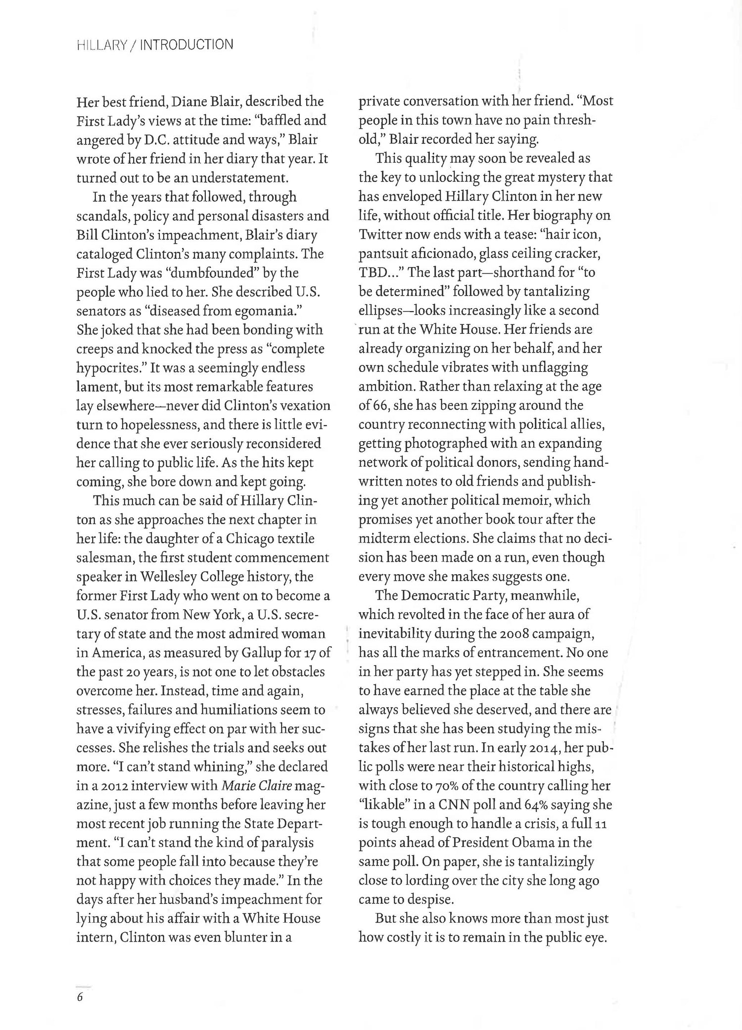 Hillary Clinton embodies a world of "firsts": The first First Lady to have an active - and controversial role - in her husband's presidency, the first American First Lady to run for political office (and win it), the first female United States Senator from the state of New York, and certainly not last, nor the least, the most widely traveled Secretary of State in history. With reporting that only TIME magazine can bring to you, this book touches upon the high and low points of her life and career - from her time as First Lady, where she was often criticized for her active and assertive role in Bill Clinton's presidency, to her time in the United States Senate, her historic campaign for the nomination for president, and her decision to serve under the man who would defeat her - Barack Obama - as Secretary of State. This book will also help to dissect what the future might hold for Hillary, whether she chooses to run for office again or decides to remain a private citizen and devote her time to lecturing, teaching, and philanthropy.