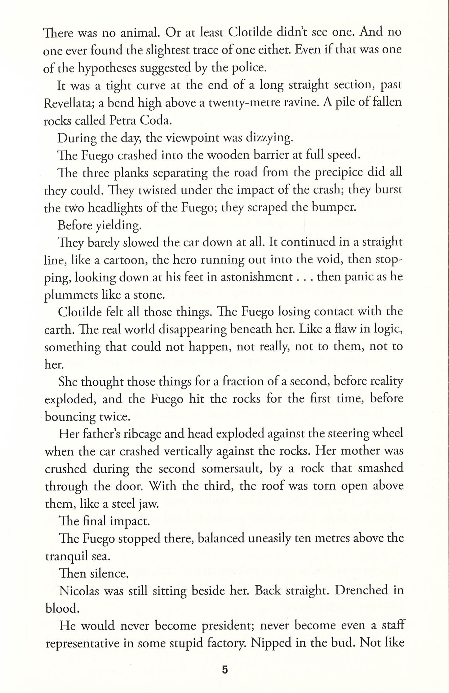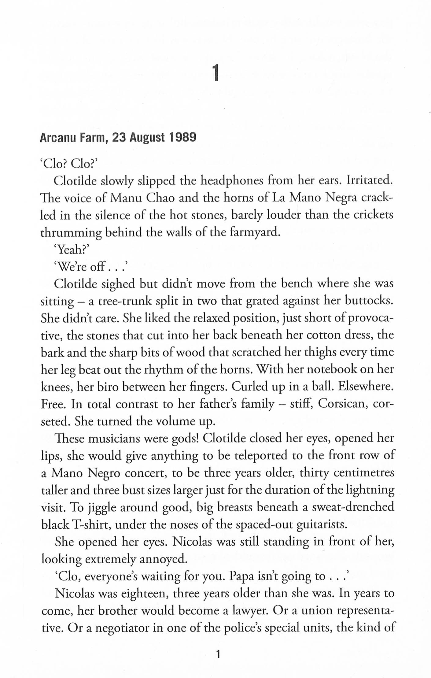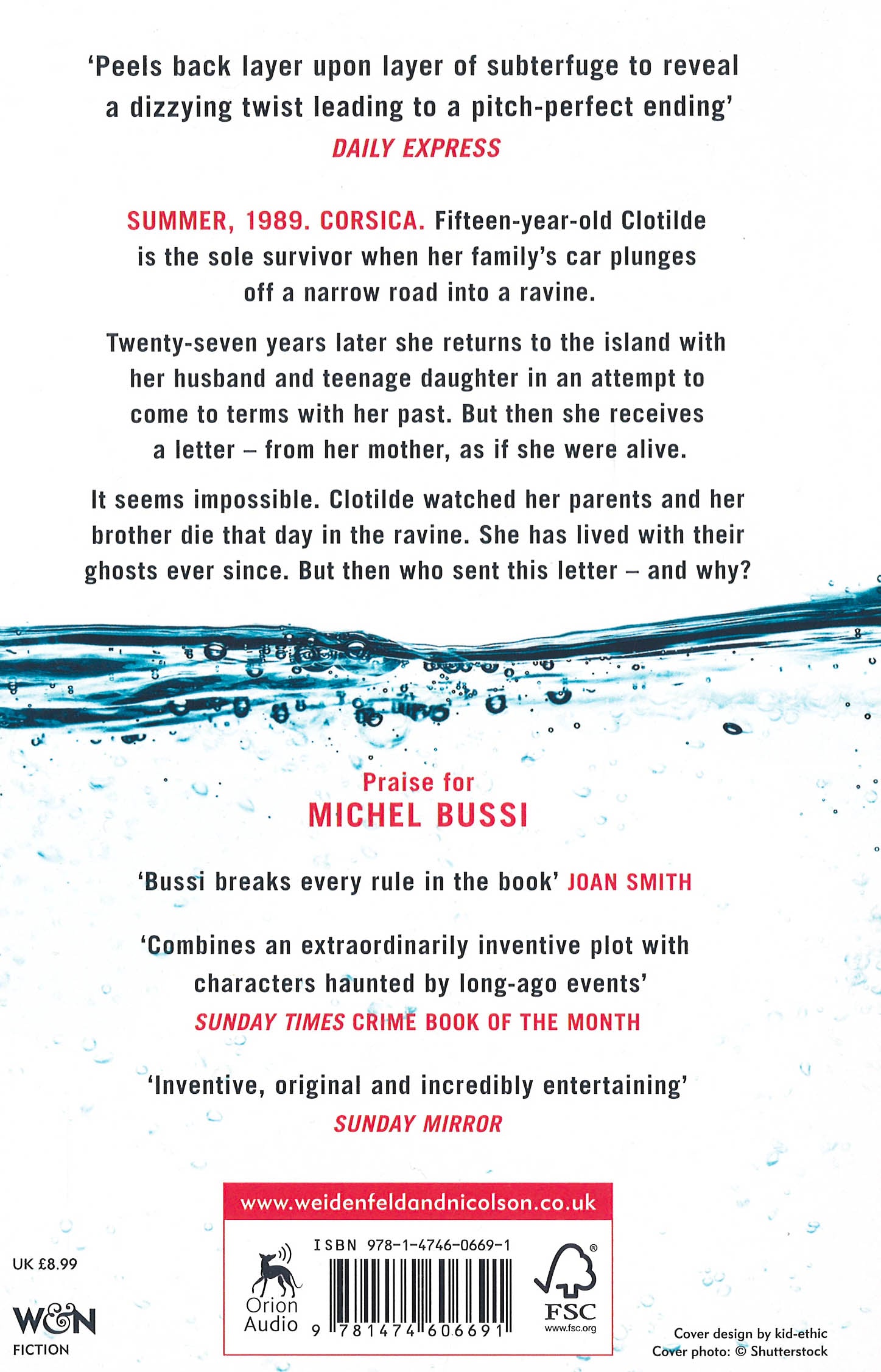 Summer, 1989. Corsica. Fifteen-year-old Clotilde is the sole survivor when her family's car plunges off a narrow road into a ravine. Twenty-seven years later she returns to the island with her husband and teenage daughter in an attempt to come to terms with her past. But then she receives a letter - from her mother, as if she were alive. It seems impossible. Clotilde watched her parents and her brother die that day in the ravine. She has lived with their ghosts ever since. But then who sent this letter - and why?