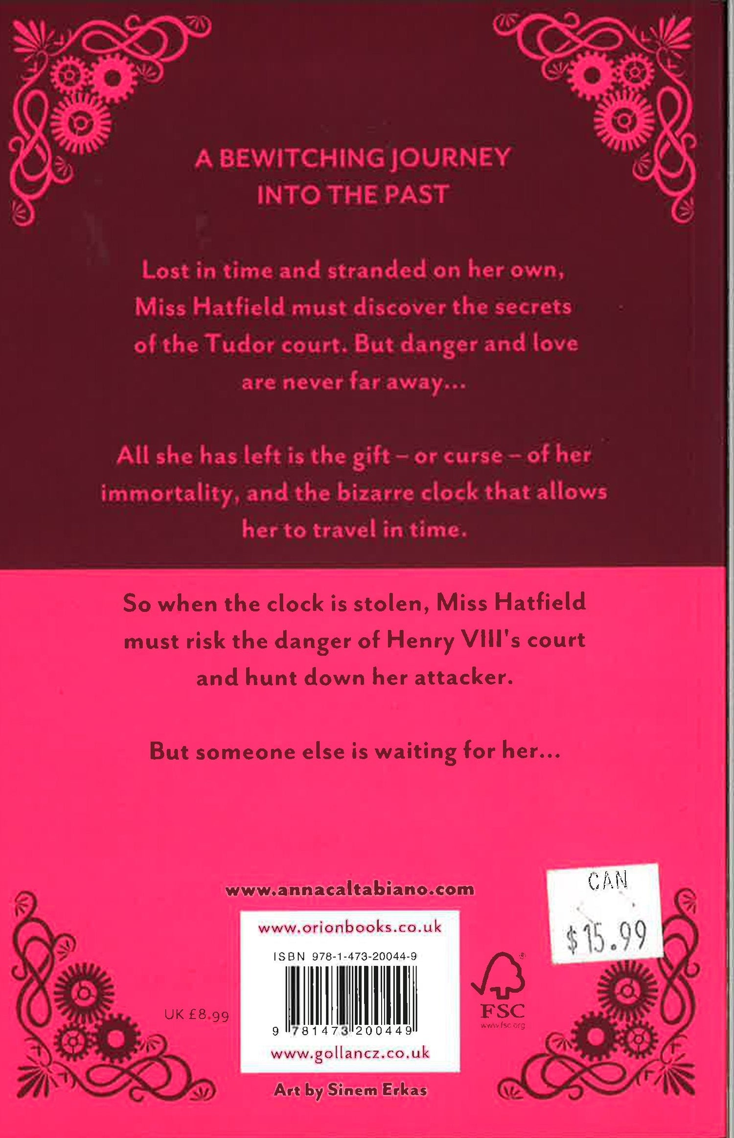 Her mentor shockingly killed in front of her, Rebecca Hatfield must flee the place and time she knows. She has lost her family, her dearest love and her ability to live a normal life. All she has left is the gift - or curse - of her immortality, and the bizarre clock that allows her to travel in time. But when she too is attacked by the mysterious black-clad figure, Rebecca finds herself stranded in Tudor England. The clock has been stolen and without it, she can never leave the past. Alone, without friends or resources, she must risk the danger of Henry VIII's court and hunt down her attacker. But someone else is waiting for her...