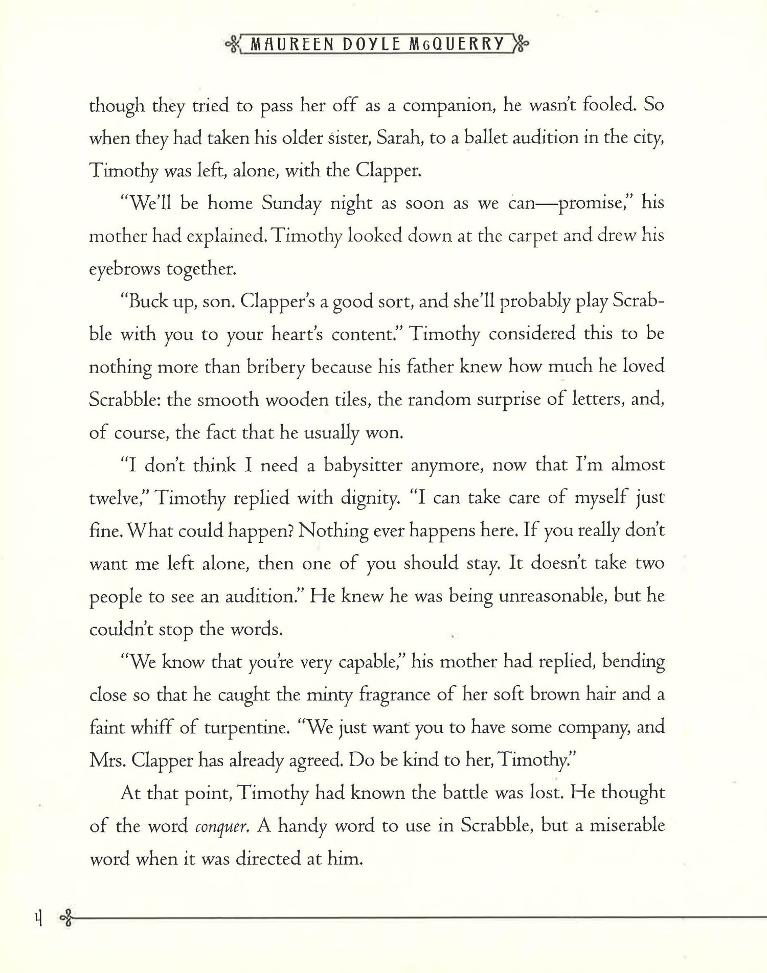 With his love of school and the game of Scrabble, Timothy James feels that the only person who really understands him is his older sister, Sarah, and he’s fairly certain nothing interesting will ever happen to him. But one night, while his parents and sister are away, he sees something that changes everything: mythical creatures in his own living room! Soon, a mystery of unparalleled proportions begins to unfold, and Timothy has to team up with his sister and the school bully, Jessica, in the name of the Light in order to defeat the powers of the Dark.