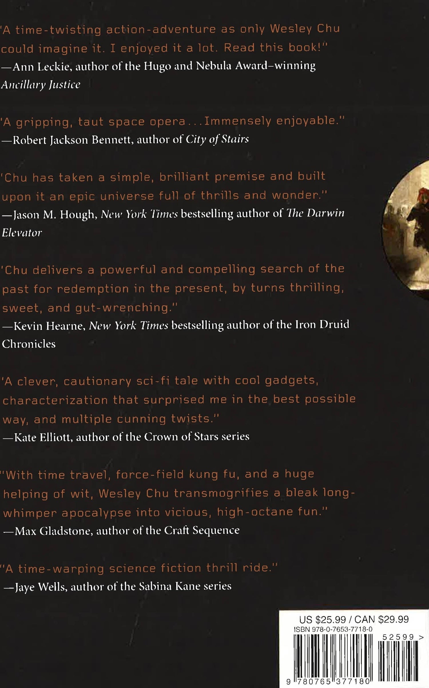 Time Salvager: a fast-paced time travel adventure from Wesley Chu, the award-winning author of The Lives of Tao. In a future when Earth is a toxic, abandoned world and humanity has spread into the outer solar system to survive, the tightly controlled use of time travel holds the key maintaining a fragile existence among the other planets and their moons. James Griffin-Mars is a chronman--a convicted criminal recruited for his unique psychological makeup to undertake the most dangerous job there is: missions into Earth's past to recover resources and treasure without altering the timeline. Most chronmen never reach old age, and James is reaching his breaking point. On a final mission that is to secure his retirement, James meets an intriguing woman from a previous century, scientist Elise Kim, who is fated to die during the destruction of an oceanic rig. Against his training and his common sense, James brings her back to the future with him, saving her life, but turning them both into fugitives. Remaining free means losing themselves in the wild and poisonous wastes of Earth, and discovering what hope may yet remain for humanity's home world.