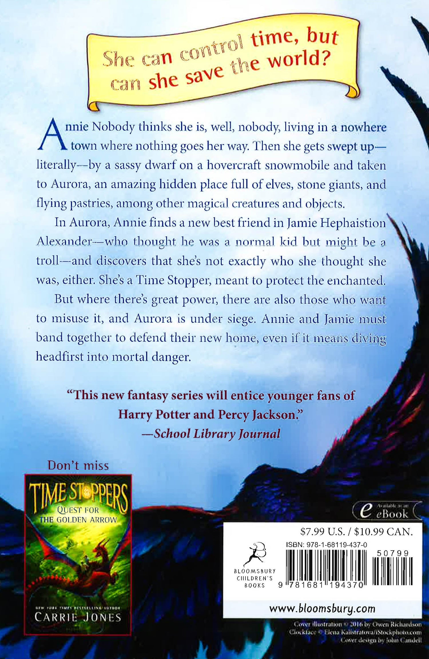 Annie Nobody thought she was, well, nobody, living in a nowhere town where nothing goes her way. Day 1 at her newest foster home proves to be dreadful, too . . . and things get even worse when she's chased by something big and scary that definitely wants to eat her. Luckily for Annie, not everything is what it seems, and she gets swept up--literally--by a sassy dwarf on a hovercraft snowmobile and taken to Aurora, a hidden, magical town on the coast of Maine. There, she finds a new best friend in Jamie Hephastion Alexander--who thought he was a normal kid (but just might be a troll)--and Annie discovers that she's not exactly who she thought she was, either. She's a Time Stopper, meant to protect the enchanted.Together, Annie and Jamie discover a whole new world of magic, power, and an incredible cast of creatures and characters. But where there's great power, there are also those who want to misuse it, and Aurora is under siege. It's up to the kids to protect their new home, even if it means diving headfirst into magical danger.Awards for NeedAn Indiebound Next PickA YALSA BBYA Nominee