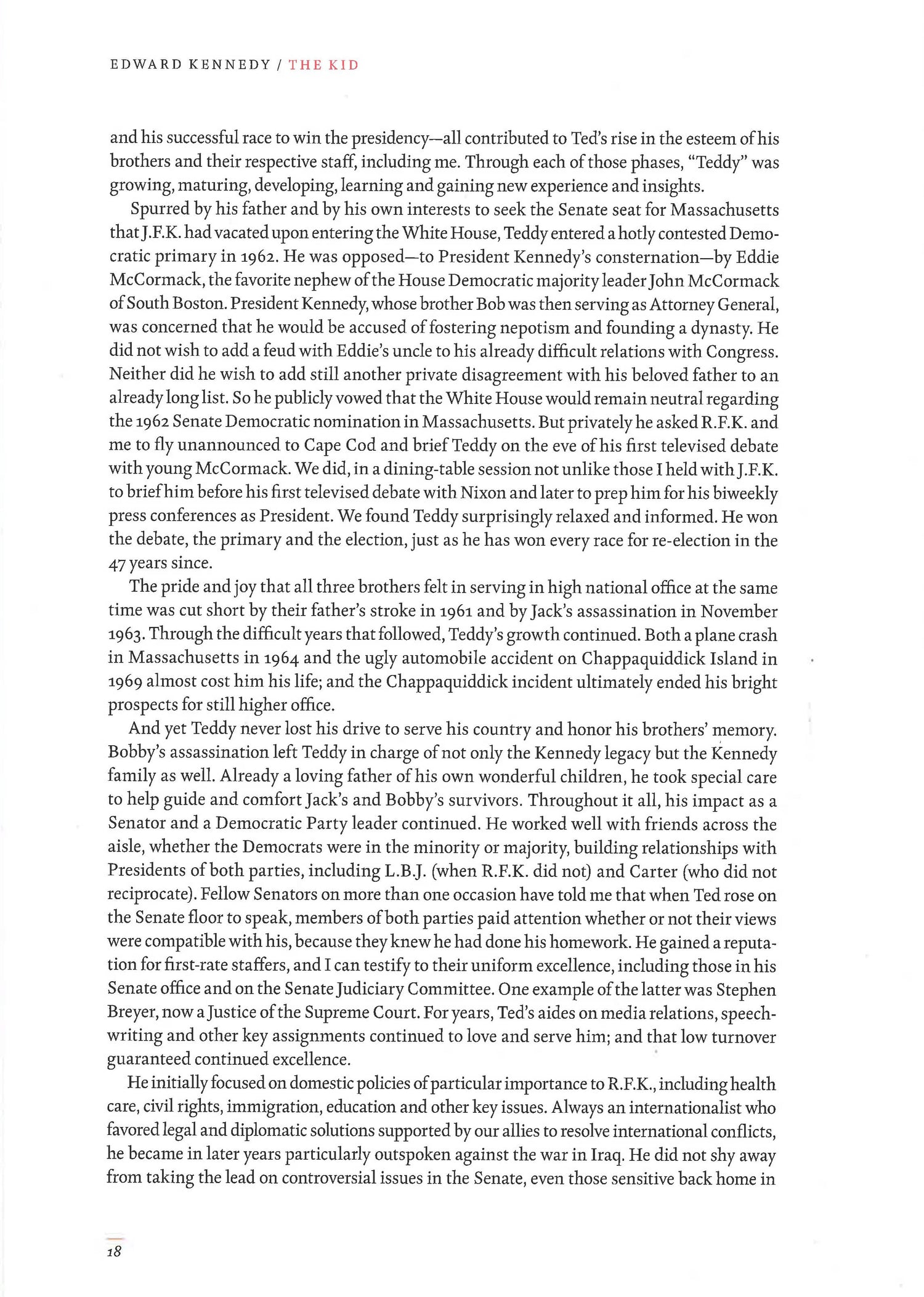 Edward Kennedy was a towering figure of the American political landscape for almost half a century. The youngest member of America's most fabled political clan and a leading voice of liberalism, he became one of the most powerful and effective Senators in the nation's history. Kennedy's rich and sometimes tragic story is told in this book by TIME writers Joe Klein, Richard Lacayo and Karen Tumulty; historian Robert Dallek; former Boston Globe columnist Mike Barnicle; longtime Kennedy-family aide Theodore Sorensen; and Kennedy's close friend and speechwriter Robert Shrum. It's also told through dozens of unforgettable photographs, including many intimate, behind-the-scenes pictures of Kennedy at work, on the campaign trail or relaxing with family and friends. That story begins with the fierce ambition of Kennedy's father, the wealthy and unstoppable Joseph Kennedy Sr., who believed that one of his sons should become President of the United States. As the youngest of Joe and Rose Kennedy's nine children, Ted wasn't necessarily destined for a political career. But one by one, his older brothers met their fates, until only Ted was left. Joe Jr. died in a combat mission during World War II. Jack reached the White House, only to be assassinated in 1963. Five years later, Robert was shot down during his own campaign for the presidency. For a time, it seemed inevitable that Ted would also seek the White House, and soon. Then came Chappaquiddick, the tragedy that cost a young woman her life and cast a shadow over Kennedy for the rest of his. When he did make his only bid for the Oval Office, in 1980, it was in a surprising attempt to unseat an incumbent Democrat, Jimmy Carter. Though Kennedy's 1980 campaign did not succeed, it ended in a speech to the Democratic National Convention that sealed his status as liberalism's greatest champion. The failure of that campaign also freed Kennedy to focus for the rest of his life on the work of the Senate. It was there that he gave enduring substance to the Kennedy family legacy, through legislation that shaped this nation in many areas - education, the economy, civil rights, law enforcement and foreign policy-and especially through his decades-long struggle to extend affordable health care to all Americans. His career culminated in 2008 with his key role in securing the Democratic Party's nomination, and ultimately the presidency, for Barack Obama. A rich compilation of insightful writing and memorable photographs, Kennedy is an authoritative portrait of a man who was one of the major figures of his time.
