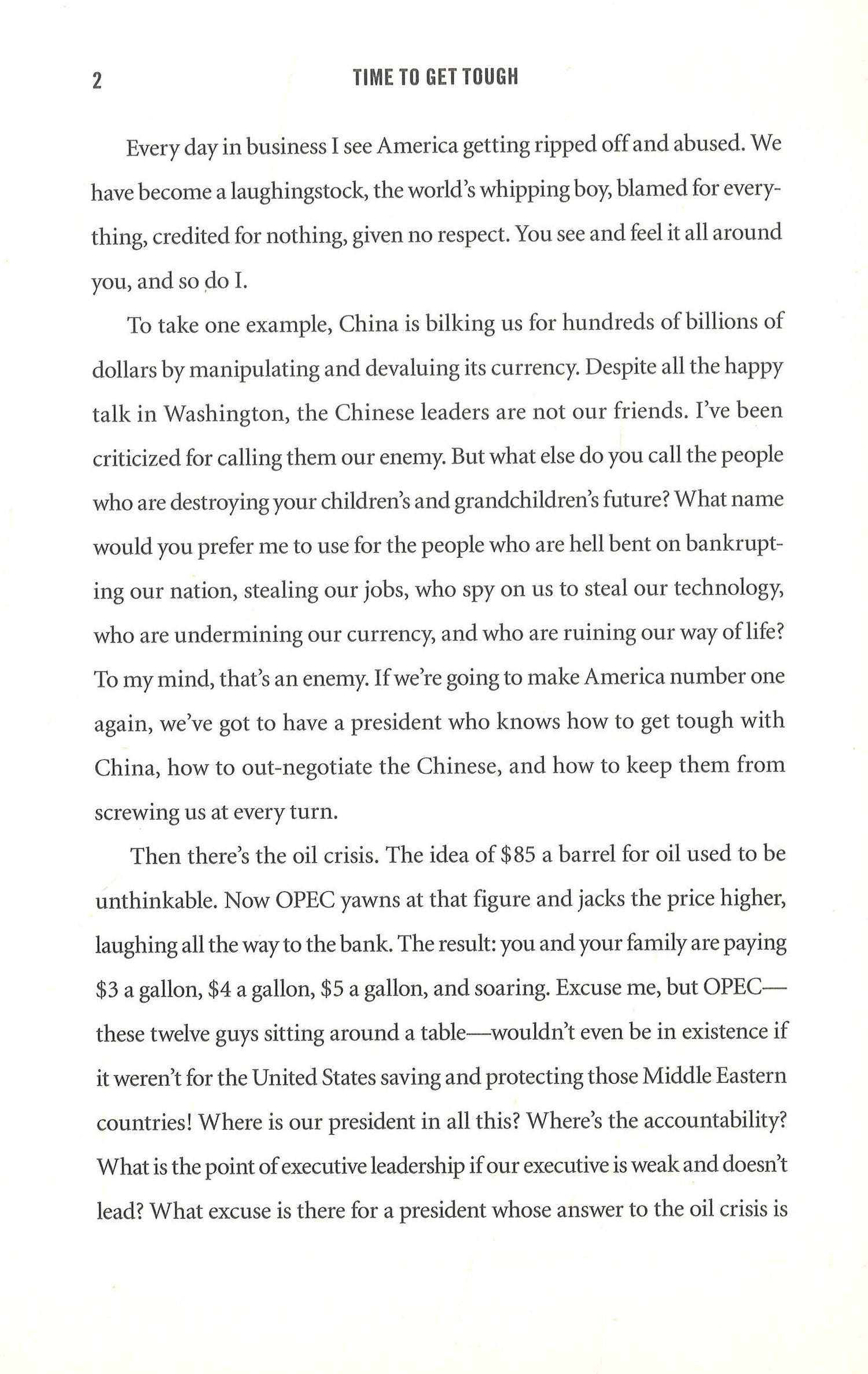 A New York Times bestseller! For the first time in his own words, President-elect Donald J. Trump explains his plan to make America great again! He wants to "put America's interests first--and that means doing what's right for our economy, our national security, and our public safety." Throughout the 2016 campaign, Trump conjured images of American strength and culture when small towns boomed with industry, mom and pop shops bustled, and people said, "Merry Christmas!" The media scoffed at Trump's vision and the people who supported him; they were blinded by the Clinton machine. But their eyes were opened after Trump won 62 million votes and the Oval Office. Even Republican House Speaker Paul Ryan said, "Donald Trump heard a voice in this country that no one else heard." As Trump says in Time to Get Tough, "I've built businesses across the globe. I've dealt with foreign leaders. I've created tens of thousands of American jobs. My whole life has been about executing deals and making real money--massive money. That's what I do for a living: make big things happen..." Trump is about to make the biggest deals of his life, and he's going to make them for America! From reversing lax immigration policies to eliminating regulations that restrict small businesses, Donald Trump understands that America "doesn't need cowardice, it needs courage." President Elect Trump is about to "Make America Great Again" and Time to Get Tough is his blueprint!
