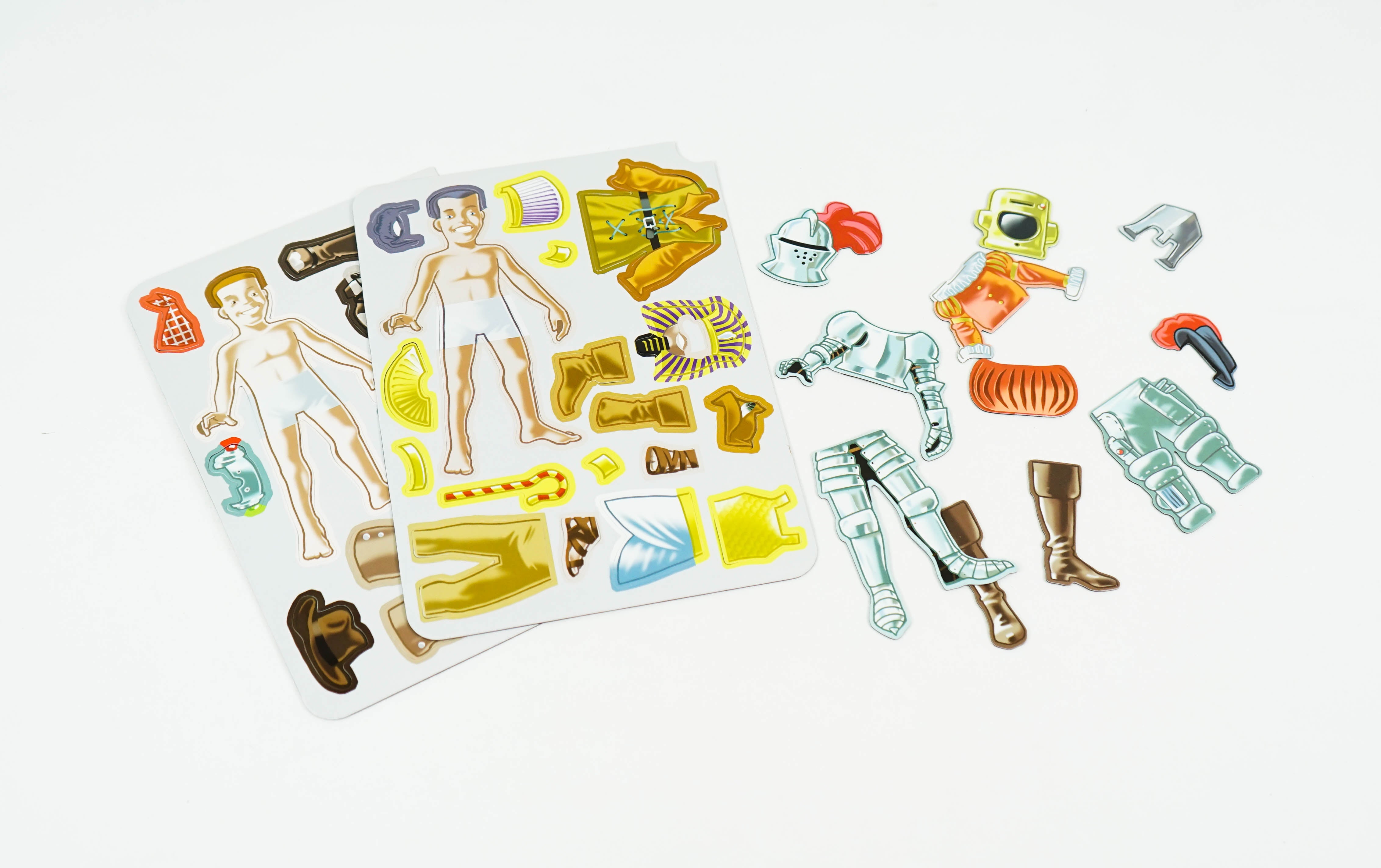 Michael Meister has illustrated a time travelling guy and given you lots of costumes to prepare him for wherever he winds up: Egyptian pharoah, cowboy, knight in armor, Robin Hood, Elizabethan courtier, or space traveller.