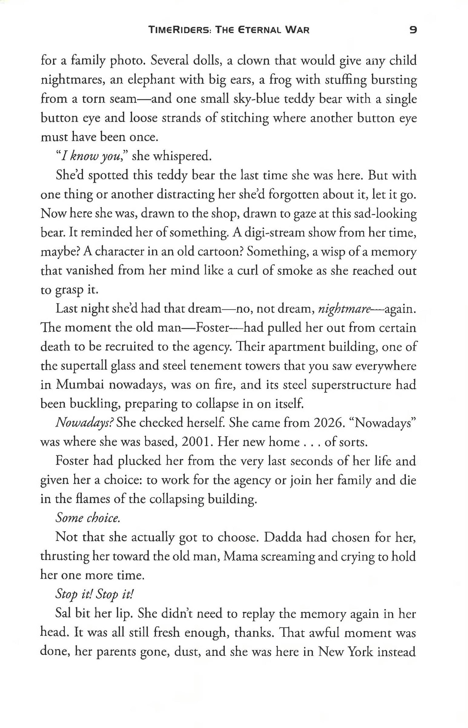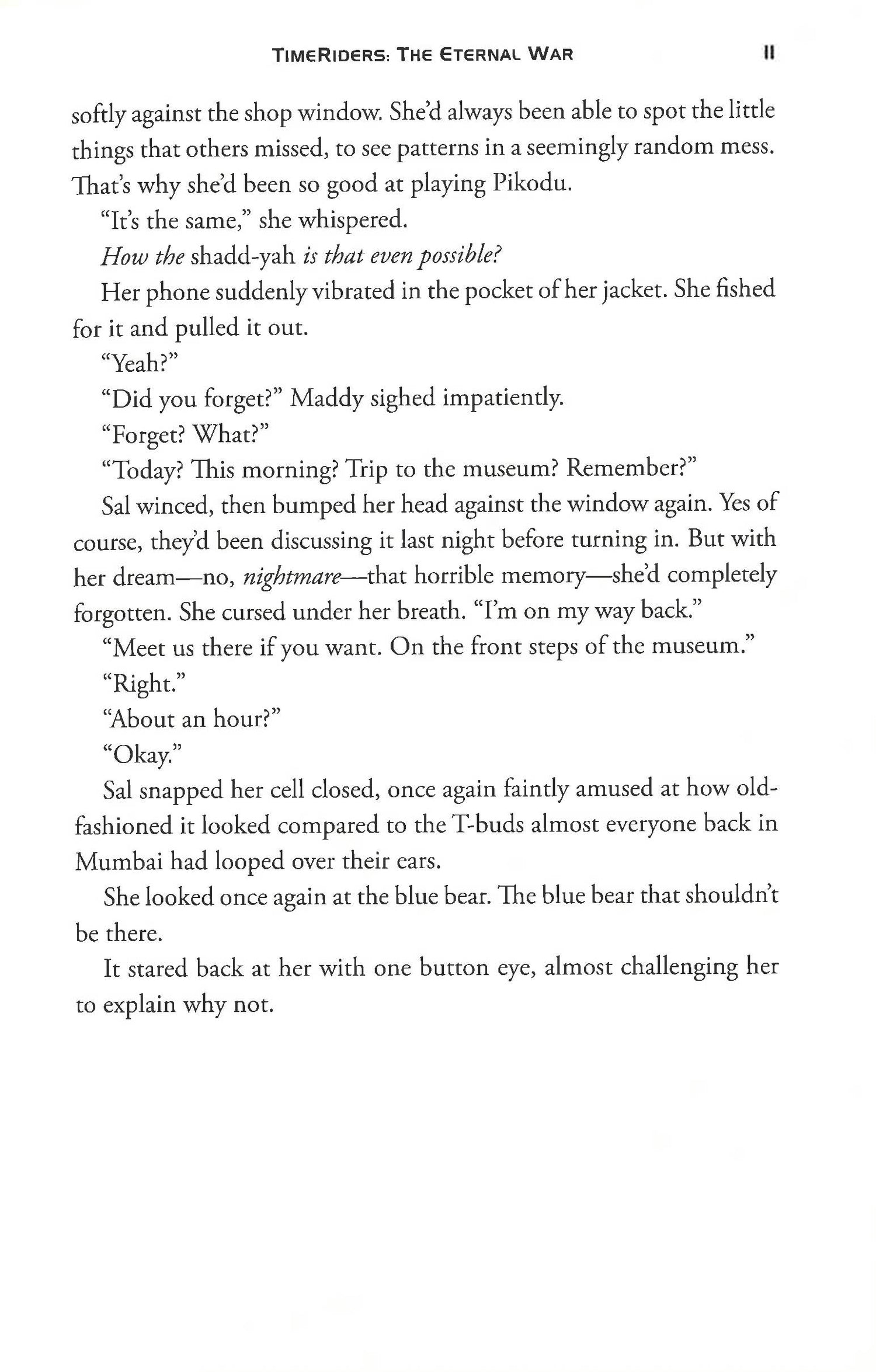 Continuing the heart-pounding, time-bending action of the TimeRiders series, The Eternal War brings readers back to a pivotal time period in American history: the Civil War. Only this alternate history is one where a young Abraham Lincoln has somehow followed Liam into the present from 1831, and the entire course of American history has changed. If the TimeRiders cant return Lincoln to the past, the country could be trapped in a dangerous state of never-ending civil war. Can Maddy persuade two colonels on either side of no mans land to cease fire long enough to save the future?