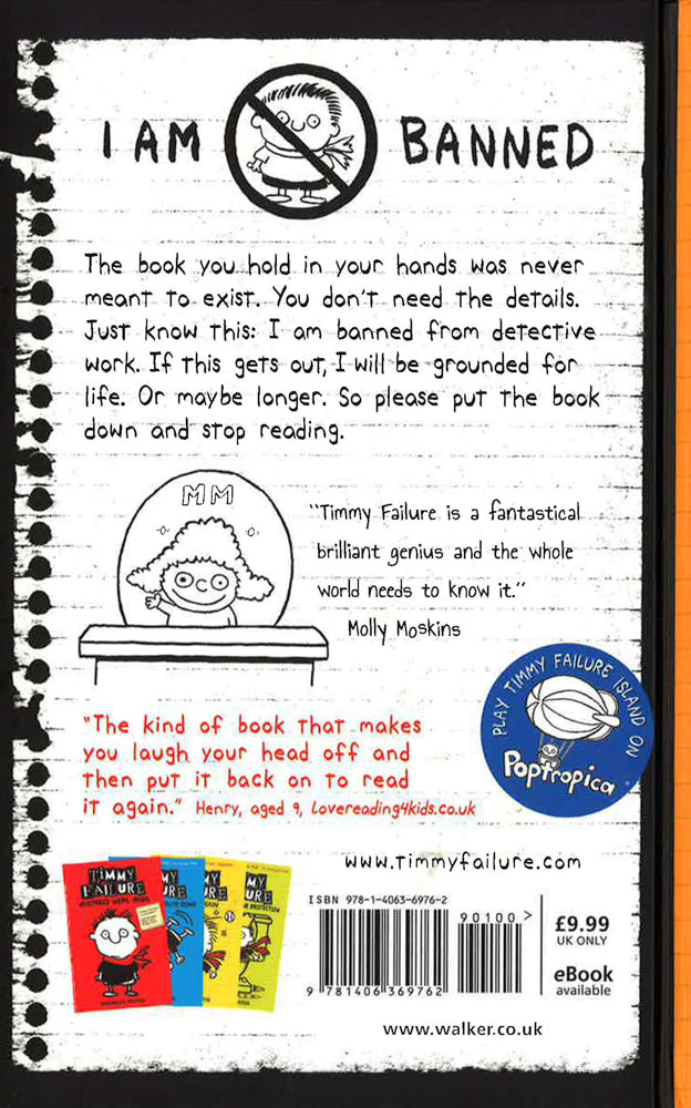Timmy Failure returns once more in the fifth book in the New York Times bestselling series.Fans of Wimpy Kid and Tom Gates will love the hilarious fifth instalment from Timmy Failure, aka the world's greatest detective.The only thing you need to know about Timmy's latest memoir is that it was never meant for publication. Timmy's detective log was stolen, and if this book gets out, Timmy will be grounded for life. Or maybe even longer. Because while Timmy was meant to be focusing on schoolwork, he was continuing his detective work in a garden shed. You don't need the details. Just know this: there's a Merry, a Larry, a missing tooth and a disappearing friend. But don't tell Timmy's mother!