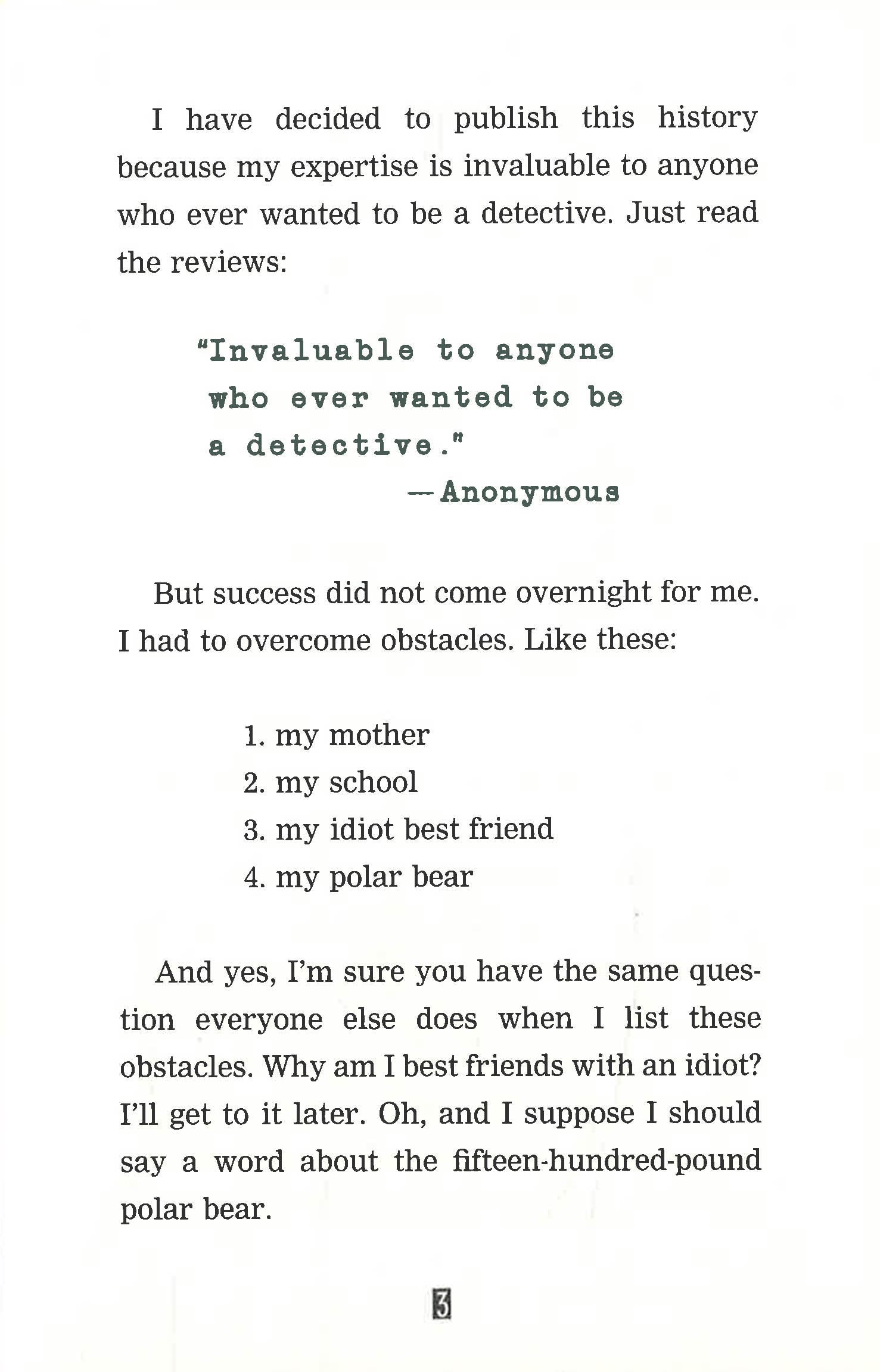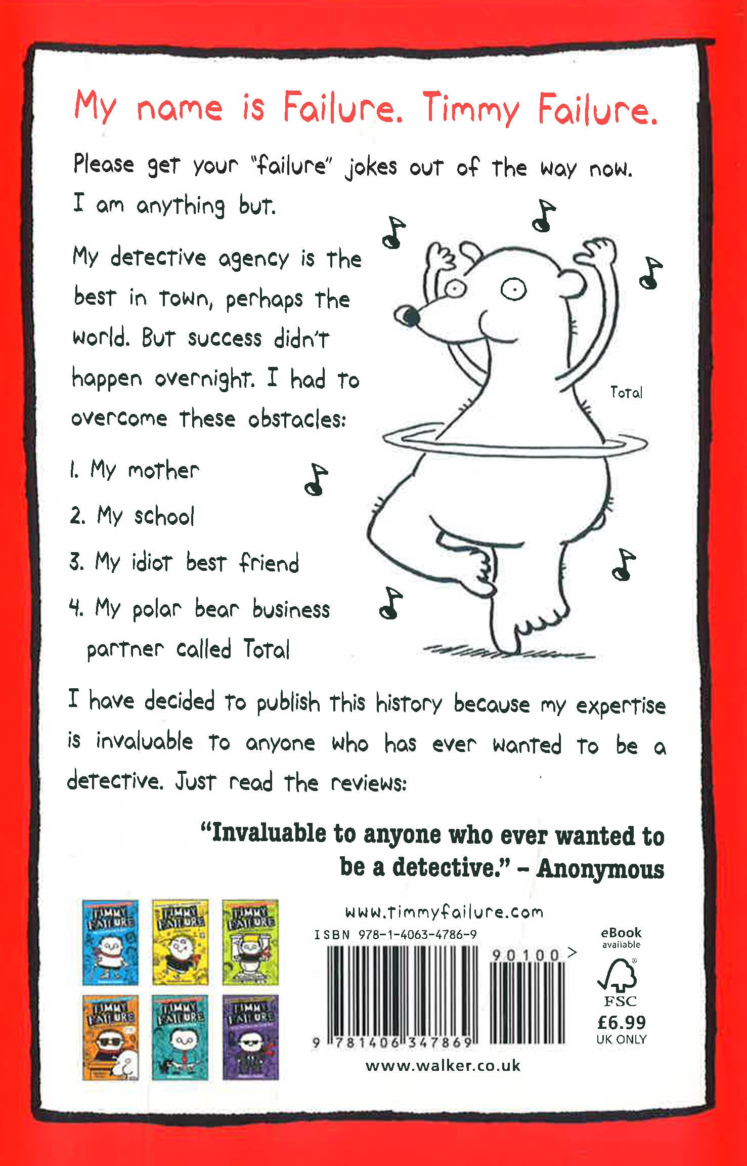 He may be clueless, but the comically self-confident Timmy Failure is CEO of the best detective agency in town - perhaps even the nation. Now his legion of fans is invited to set off on their own path to mastery. Added material includes step-by-step instructions on how to draw Timmy and his impressively lazy business partner, the polar bear Total. Even better, kids are invited to share the spotlight with Timmy by sending their drawings to his website, for a chance to be featured in the Timmy Failure Gallery of Greatness.