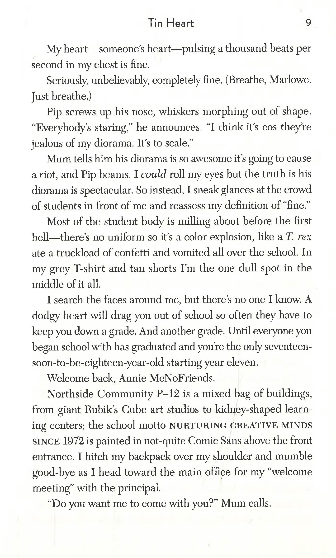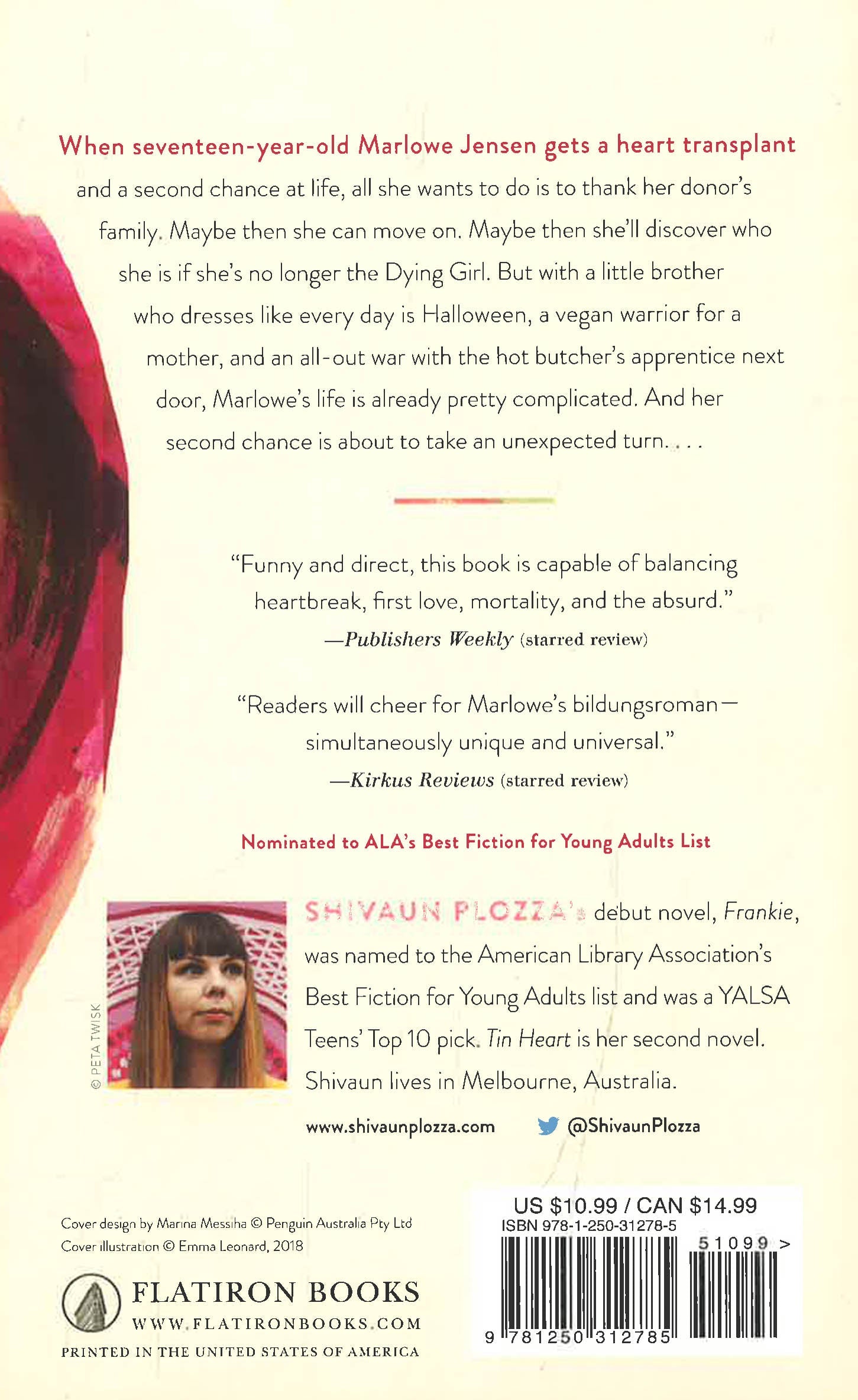 Bestselling author of All the Bright Places Jennifer Niven calls emerging talent Shivaun Plozza's charming and romantic second YA novel, Tin Heart, "from cover to cover swoon-worthy, moving, deep, and funny"!