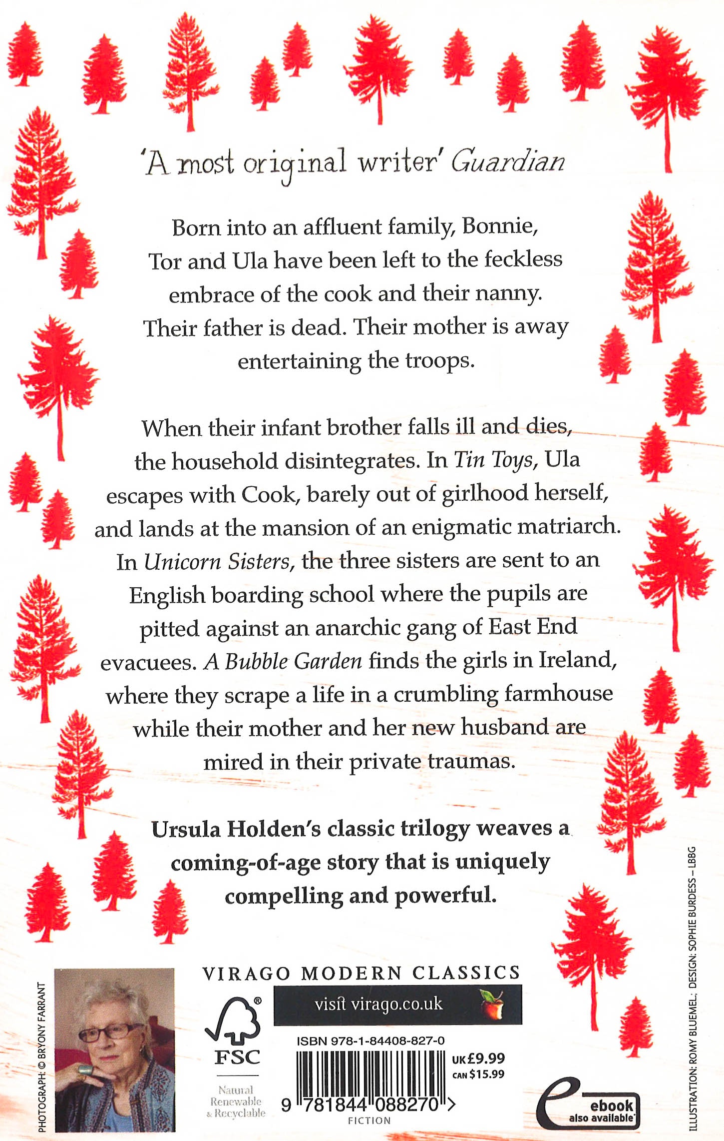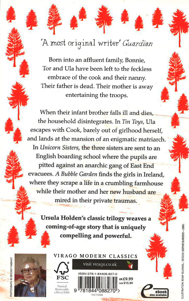 Ursula Holden's classic trilogy weaves a vivid, dramatic and mysterious story of three sisters coming of age in England and Ireland during the war years. Born into an affluent family, Bonnie, Tor and Ula have been left to the feckless embrace of the cook and their nanny. Their father is dead. Their glamorous mother is away entertaining the troops.When their infant brother falls ill and dies, the household disintegrates. In Tin Toys, Ula escapes with Cook, barely out of girlhood herself, and lands at the mansion of an enigmatic matriarch. In Unicorn Sisters, the three sisters are sent to a shabby English boarding school where the pupils are pitted against an anarchic gang of East End evacuees. A Bubble Garden finds the girls in Ireland, where they scrape a life in a crumbling, once-grand farmhouse, while their mother and her new husband are mired in their private traumas. A uniquely compelling and powerful coming-of-age classic.
