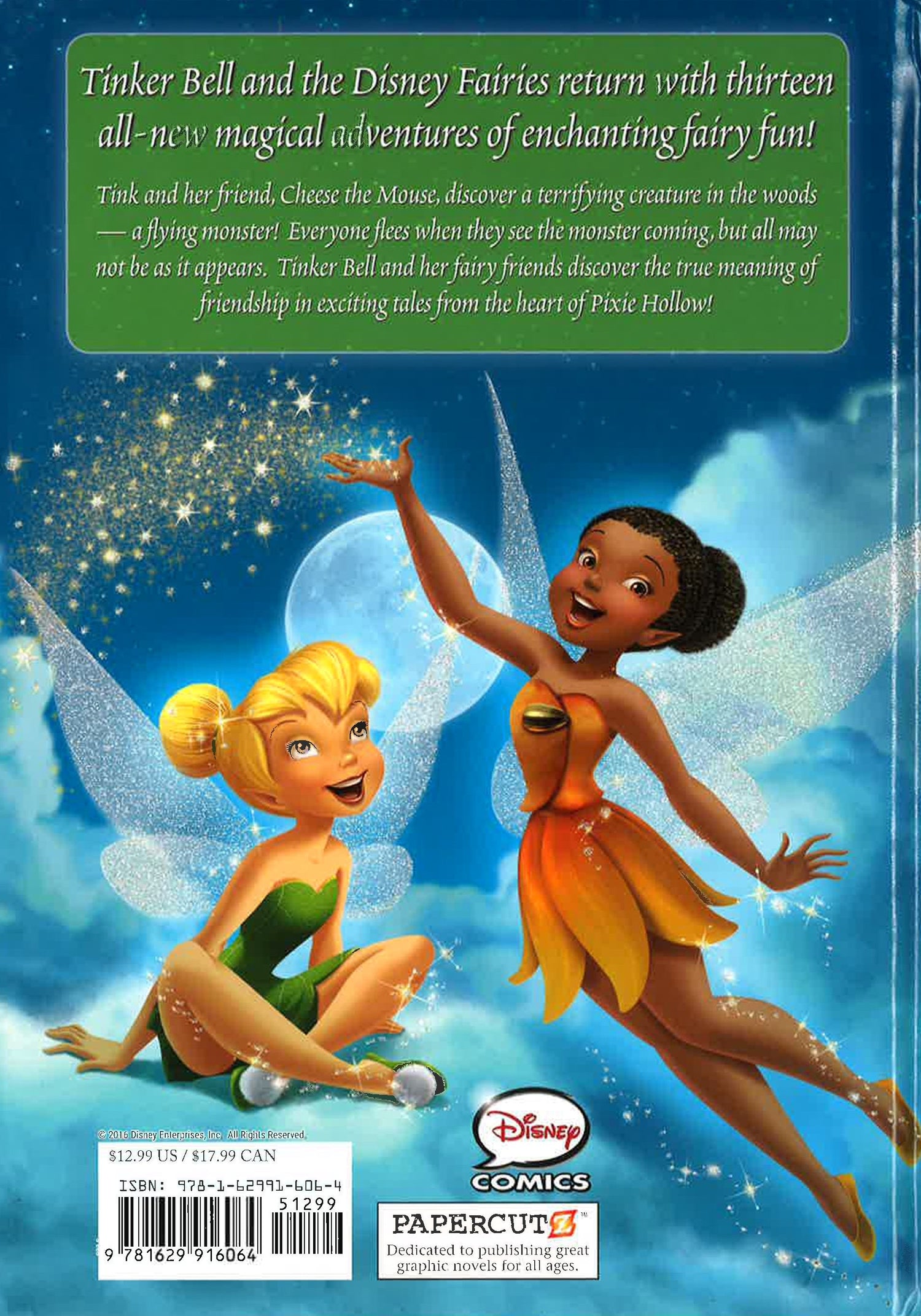 Tink and Cheese, the mouse, discover a terrifying creature in the woods: a flying monster! All the fairies flee when they see the monster coming, but the monster is not what it appears to be at first. Tinker Bell and her fairy friends discover the true meaning of friendship in this collection of stories from the heart of Pixie Hollow.