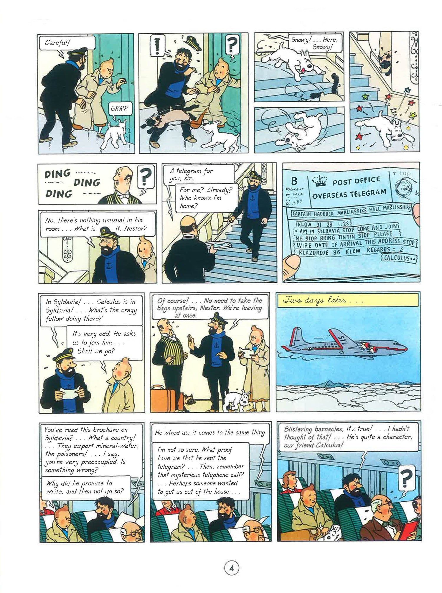 Tintin discovers that Professor Calculus is building a space rocket. Tintin and Captain Haddock are amazed to find that Professor Calculus is planning a top-secret project from the Sprodj Atomic Research Centre in Syldavia. And before our intrepid hero knows it, the next stop on this adventure is … SPACE.