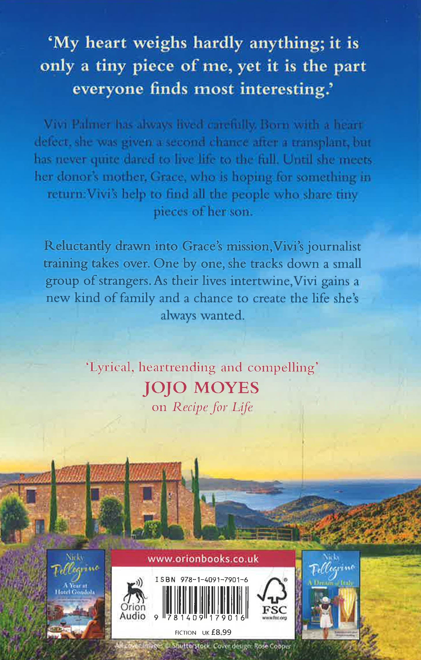 Vivi Palmer knows what it's like to live life carefully. Born with a heart defect, she was given a second chance after a transplant, but has never quite dared to make the most of it. Until she comes face-to-face with her donor's mother, Grace, who wants something in return for Vivi's second-hand heart: her help to find all the other people who have tiny pieces of her son.