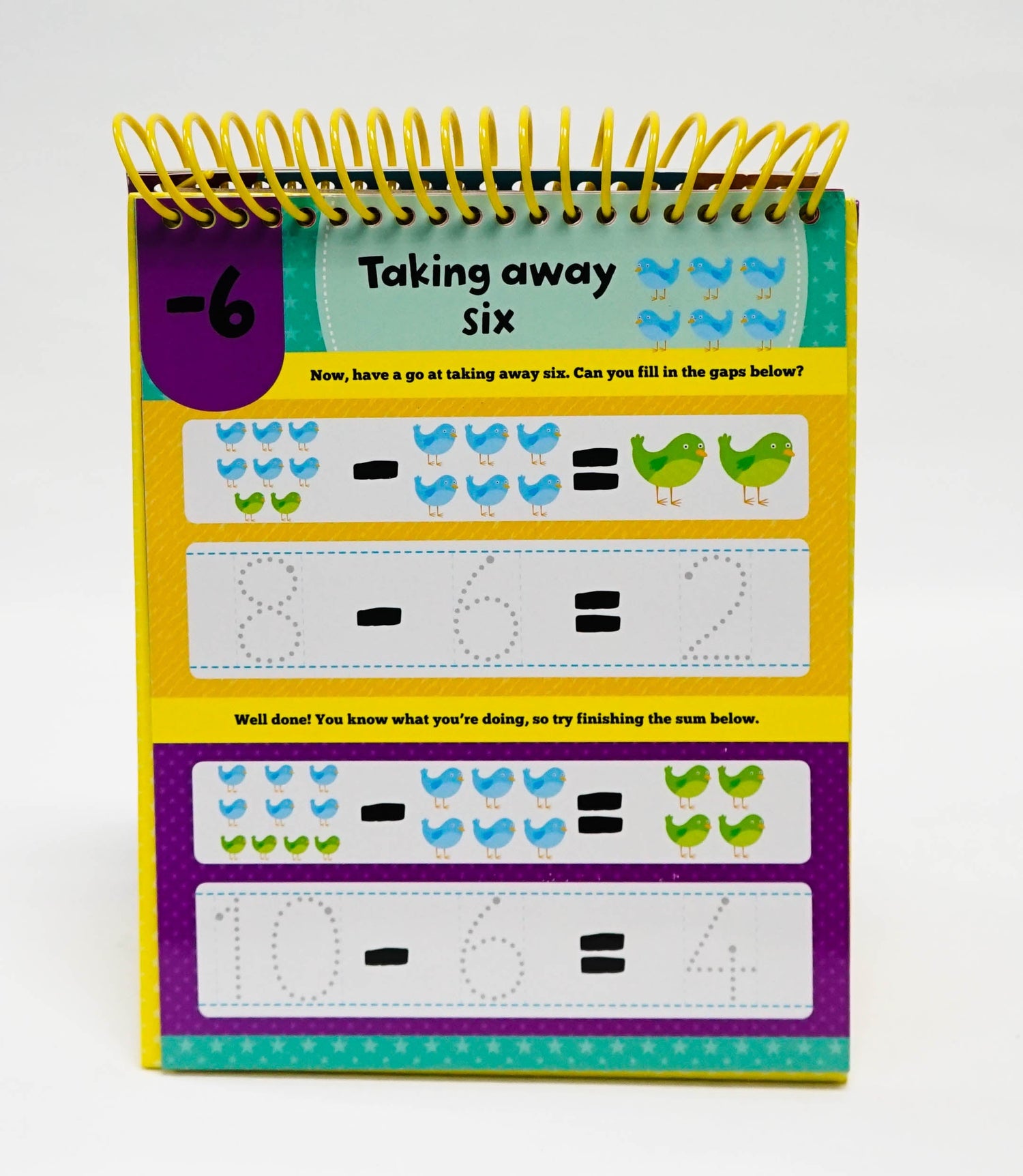 Flip over the pages of this wipe-clean easel for a fun way to learn subtraction. With dotted lines to follow and pictures to complete, this is the perfect first step to taking away.