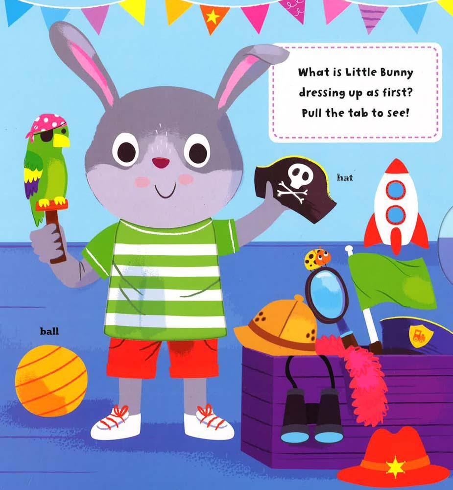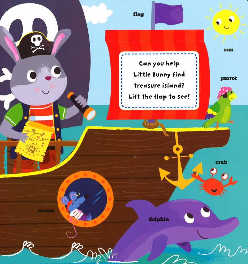 Join Little Bunny for an amazing playtime in this interactive book! Toddlers will love to lift the flaps, pull the tabs and spin the wheels as Little Bunny sails the high seas, explores the jungle and much more.With a fun, rhyming story and over 50 first words to learn, this book is a must for little adventurers.