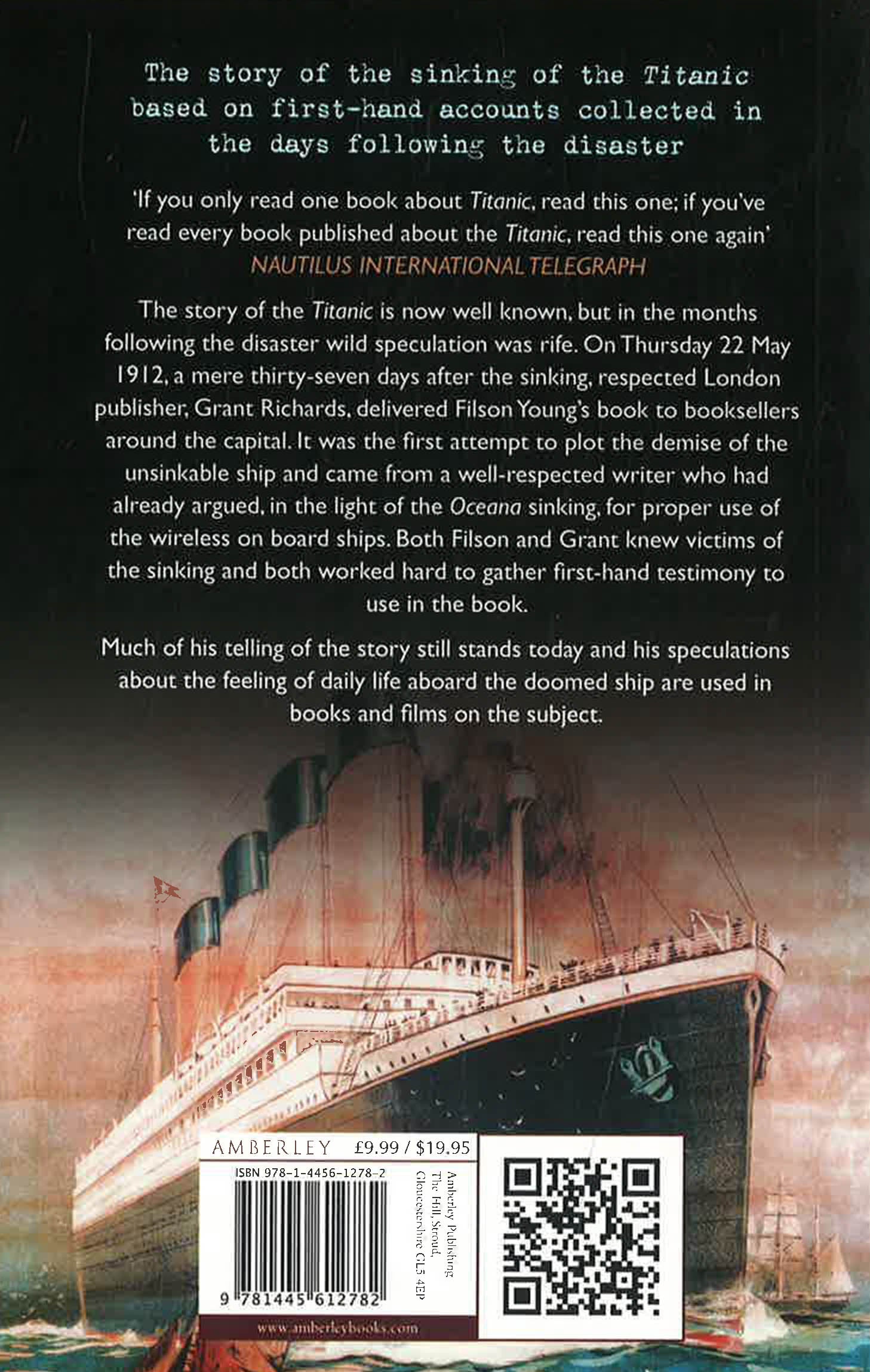 The story of the Titanic is now well known. But in the months following the disaster wild speculation was rife. On Thursday 22 May 1912, a mere 37 days after the sinking, respected London publisher Grant Richards, delivered Filson Young's book to booksellers around the capital. It was the first attempt to plot the demise of the unsinkable ship from a well-respected writer who had already argued in the light of the Oceana sinking, for proper use of the wireless on board ships. Both Filson and Grant knew victims of the sinking and both worked hard to gather first-hand testimony to use in the book. Much of his telling of the story still stands today and his speculations about the feeling of daily life aboard the doomed ship are used in books and films on the subject.