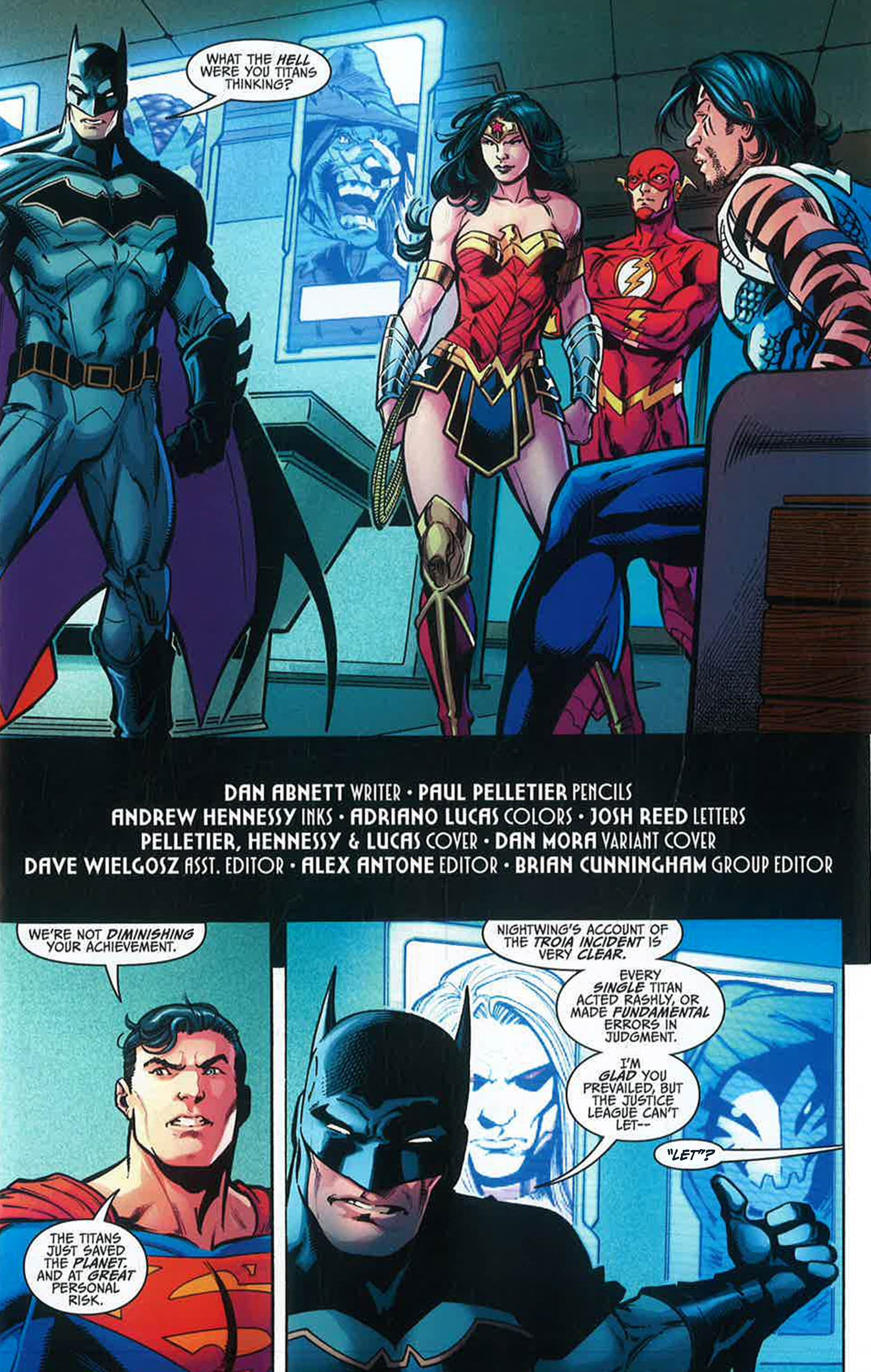 When a series of mistakes by the Titans nearly leads to global catastrophe, the Justice League steps in to issue a directive--Titans no more! While Donna Troy is kept under observation in the Justice League's watchtower to determine the link between Donna and her evil future self, Troia, the rest of the team is told to stand down and take a break.