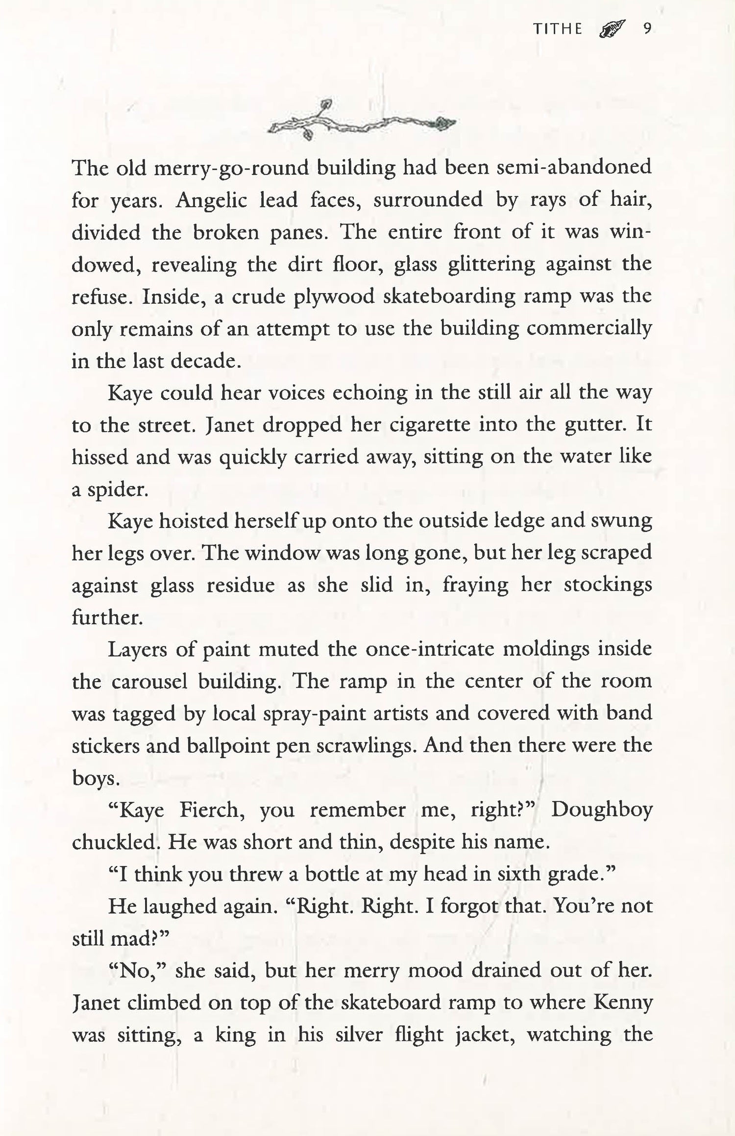 Sixteen-year-old Kaye is a modern nomad. Fierce and independent, she drifts from place to place with her mother’s rock band until an ominous attack forces them back to Kaye’s childhood home. But Kaye’s life takes another turn when she stumbles upon an injured faerie knight in the woods. Kaye has always been able to see faeries where others could not, and she chooses to save the strange young man instead of leaving him to die.