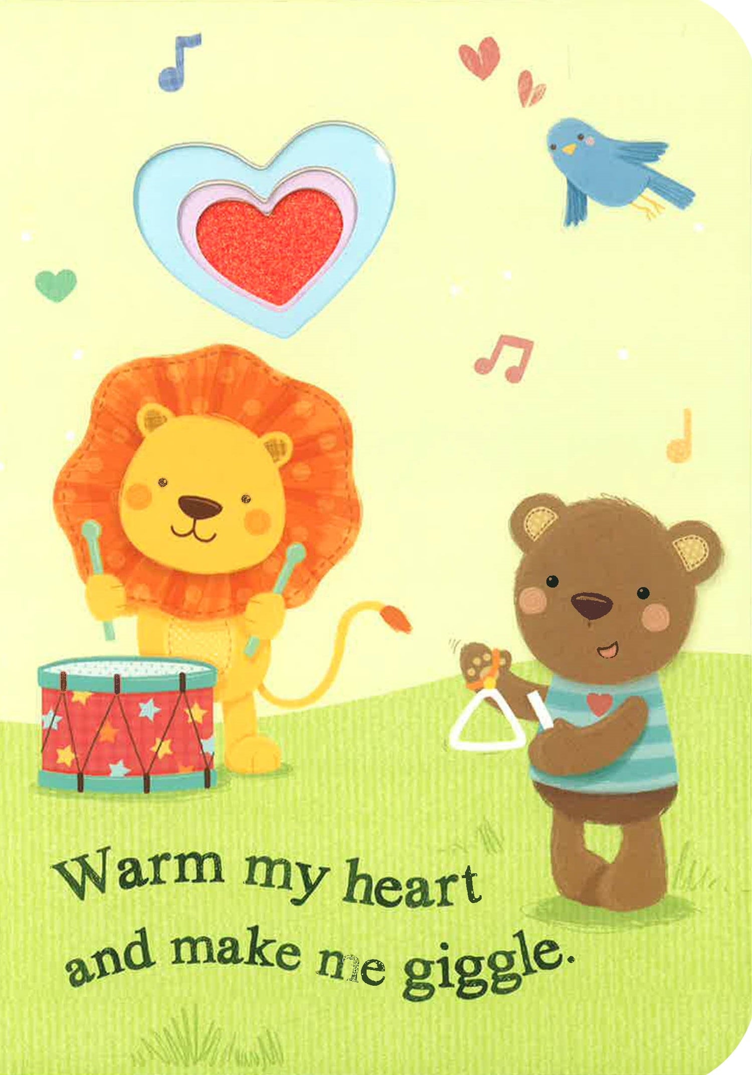 Meet adorable animal characters and enjoy a gentle rhyme in this sweet book for Baby! A shiny glitter heart and fun peek-through pages will appeal to even the youngest children.