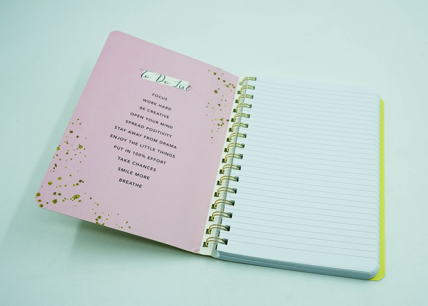 This gorgeous inspiring Journal features an enclosed spiral design, making it so easy to take notes on the go. Take it to meetings or keep on your desk for everyday notes and ideas. Jot down your important notes, dreams, ideas and thoughts anywhere you need with this journal. - Measures 210mm H X 143mm L - 100 ruled pages and 100 blank pages in 80gsm simile paper - Featuring spot UV lettering on cover