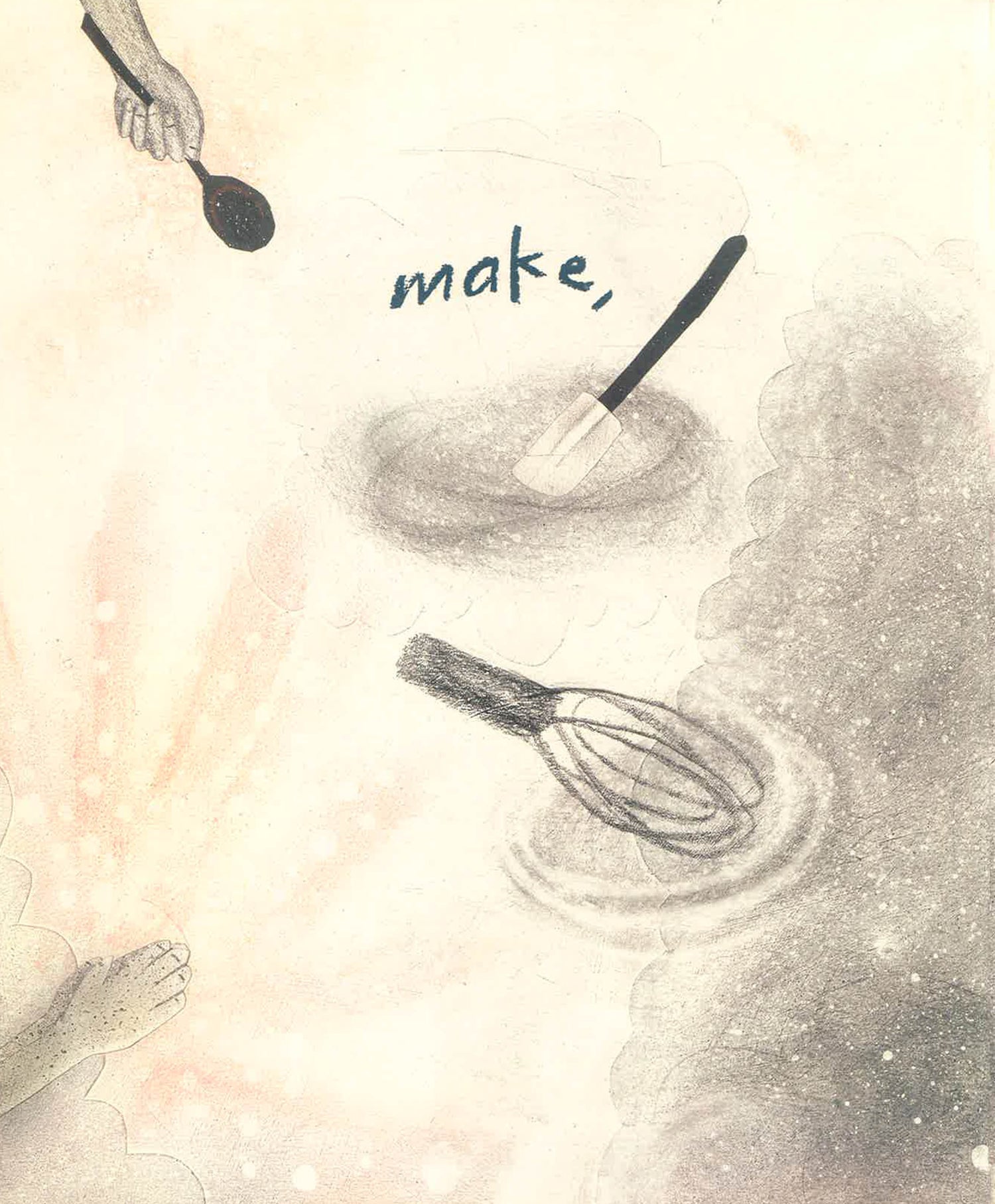 To make . . . a cake, a garden, a song, you first gather, then make—and wait. To make a story (like this one), you gather, make, wait.