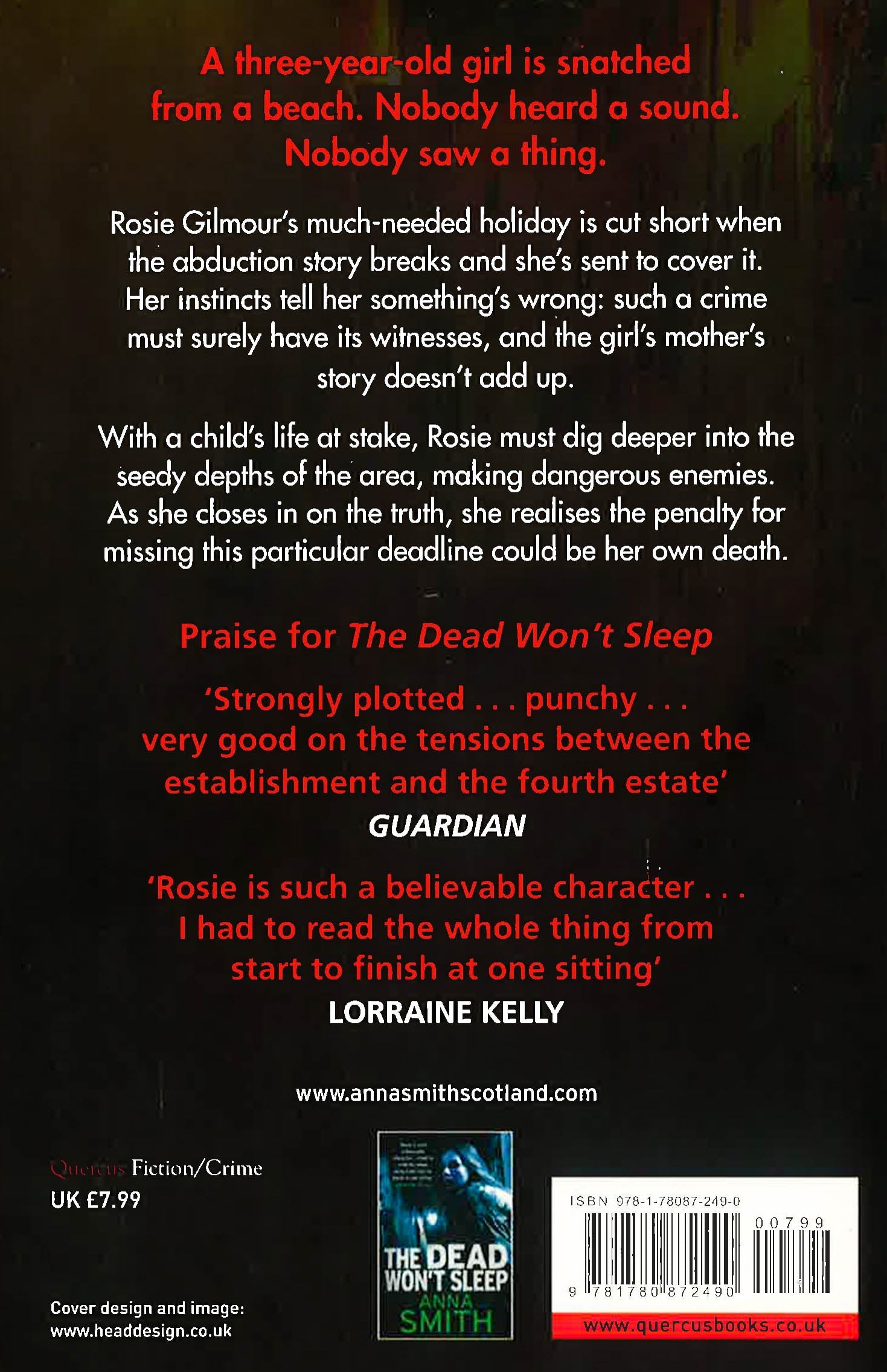 A three-year-old girl is snatched from a beach in Spain. Nobody heard a sound. Nobody saw a thing. Rosie Gilmour's much-needed holiday is cut short when the abduction story breaks and she's sent to cover it. Her instincts tell her something's wrong: such a crime must surely have its witnesses, and the girl's mother's story doesn't add up. With a child's life at stake, Rosie must dig deeper into the seedy depths of the area, making dangerous enemies. As she closes in on the truth, she realises the penalty for missing this particular deadline could be her own death.'Perfectly paced and neatly plotted' Daily Mail