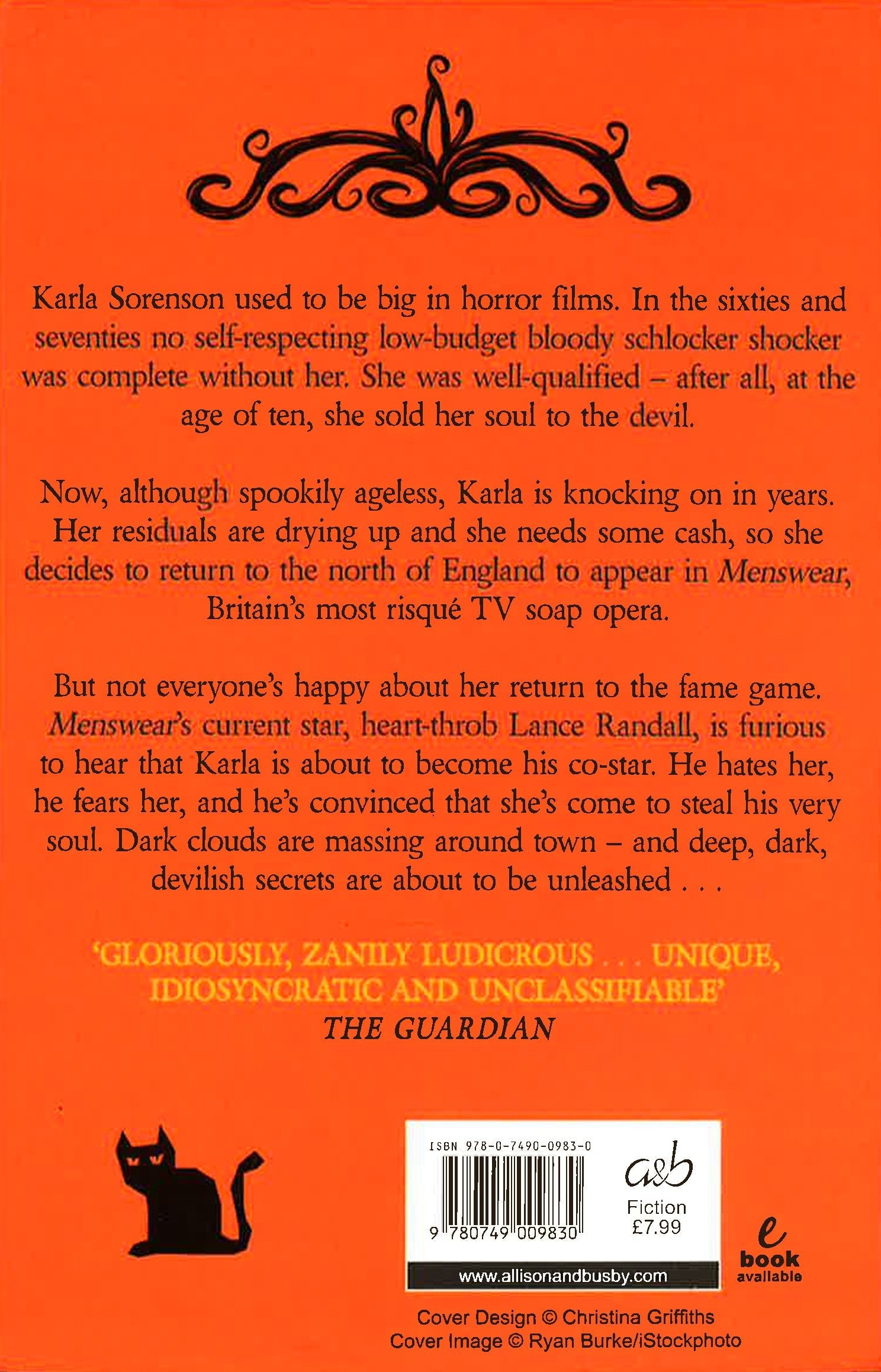 Karla Sorensen used to be big in horror films. In the sixties and seventies no self-respecting low-budget bloody schlocker shocker was complete without her. She was well-qualified; after all, at the age of ten, she sold her soul to the devil. Now, although spookily ageless, Karla is knocking on in years. Her residuals are drying up and she needs some cash, so she decides to return to the north of England to appear in Menswear, Britain's most risque TV soap opera. But not everyone's happy about her return to the fame game. Menswear's current star is heartthrob Lance Randall and he's furious to hear that Karla is about to become his co-star. He hates her, he fears her, and he's convinced that she's come to steal his very soul. Dark clouds are massing around town - and deep, dark, devilish secrets are about to be unleashed ...