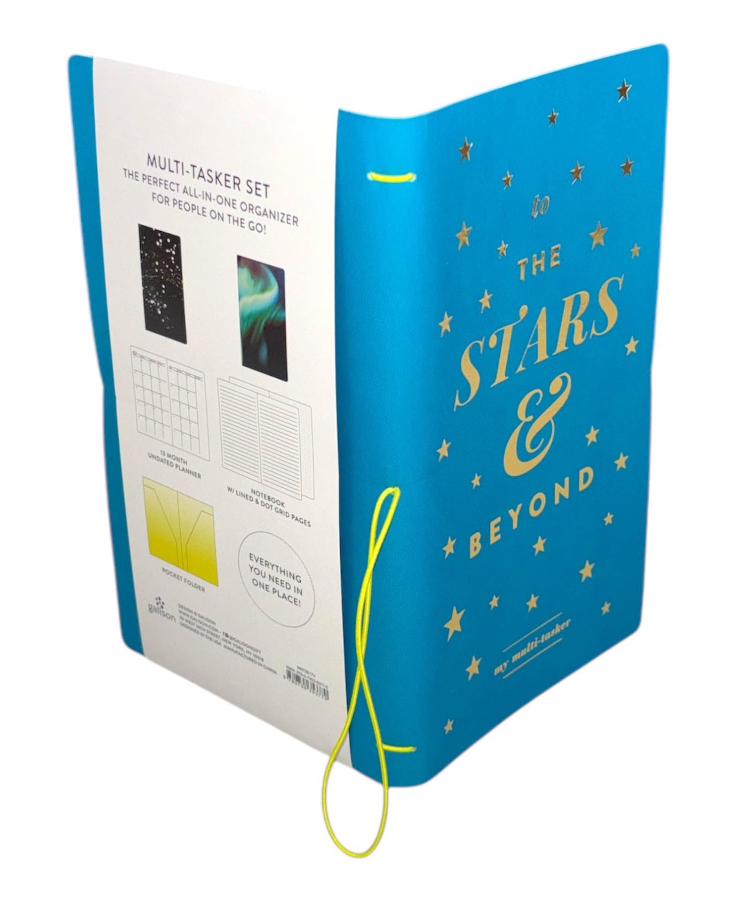 Galison's Multi-Tasker Journal is uniquely sized to grasp in hand, carry under your arm or slide into the smallest of bags, making it the perfect mini-organizer for people on the go. Enclosed with a secure elastic band, the tasker contains a notebook, planner and a folder to store business cards, receipts, tickets and passports. The cover is made of vegan leather and gold foil stamped with a mantra to carry you thru the day.