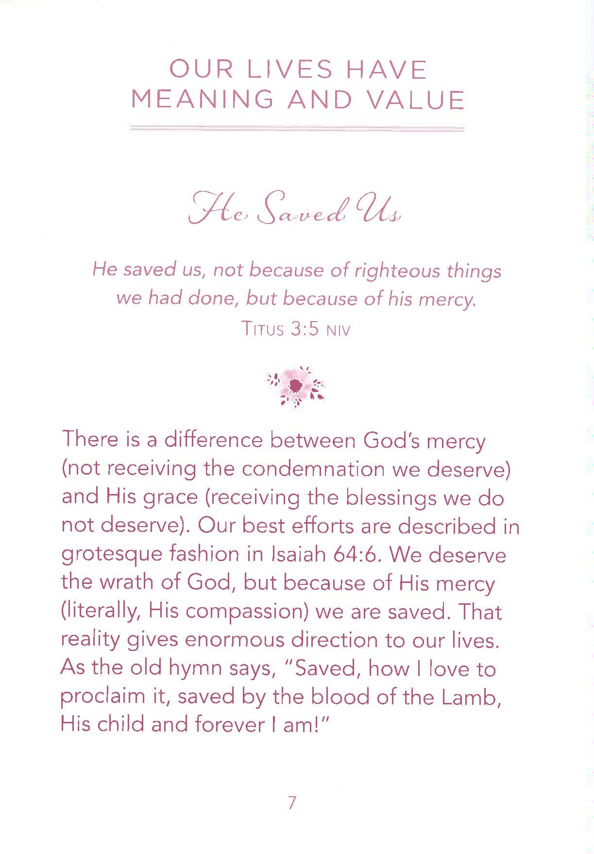 With more than 180 just-right-sized readings, this compact book overflows with encouraging devotions that are accompanied by related scripture selections that will leave you feeling perfectly loved.