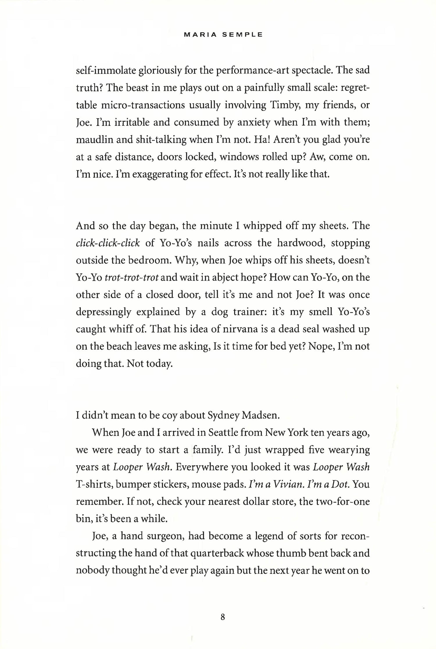 Whipsmart, dazzling, darkly comic and deeply touching. I loved it!' Marian Keyes A brilliant new novel from the author of bestselling, Women's Prize for Fiction shortlisted Where'd You Go, Bernadette.Eleanor Flood knows she's a mess. But today will be different. Today she will shower and put on real clothes. She will attend her yoga class after dropping her son, Timby, off at school. She'll see an old friend for lunch. She won't swear. She will initiate sex with her husband, Joe. But before she can put her modest plan into action - life happens.For today is the day Timby has decided to pretend to be ill to weasel his way into his mother's company. It's also the day surgeon Joe has chosen to tell his receptionist - but not Eleanor - that he's on vacation. And just when it seems that things can't go more awry, a former colleague produces a relic from the past - a graphic memoir with pages telling of family secrets long buried and a sister to whom Eleanor never speaks.From the dazzling pen of Maria Semple, author of bestselling Where'd You Go, Bernadette, comes a hilarious and life-affirming story about a woman who wakes up determined to be her best self.