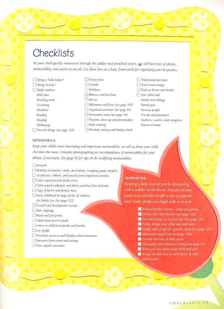 Parents will discover just how easy it is to scrapbook the special moments in their child's life, including playtime, sleepy time, bath time, meal time, new friends, bugs & boo-boos, favorite things, explorations & adventures, misadventures, preschool, family, growing up, portraits, pets and more. This latest selection from Memory Makers magazine features more than 200 never-before-seen scrapbook page layouts. The book is packed with user-friendly instructions, full-color visuals and unique idea galleries for creating theme and storybook albums that can be cherished for a lifetime.