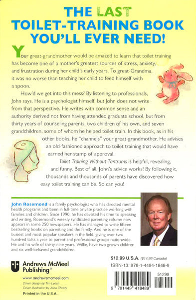 In his 15th parenting book, Toilet Training Without Tantrums, nationally recognized expert John Rosemond lays to rest the notion that potty training must be the complicated, emotionally draining, stressful event it has become for children and parents. Your great-grandmother would be amazed to learn that toilet training has become one of Mom's greatest sources of anxiety and frustration during her child's early years.
