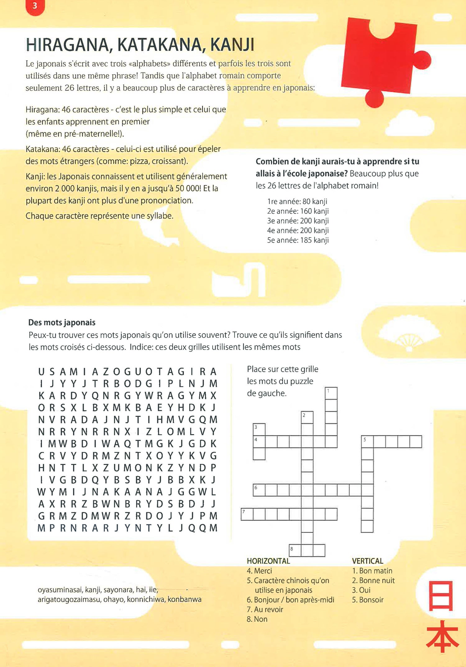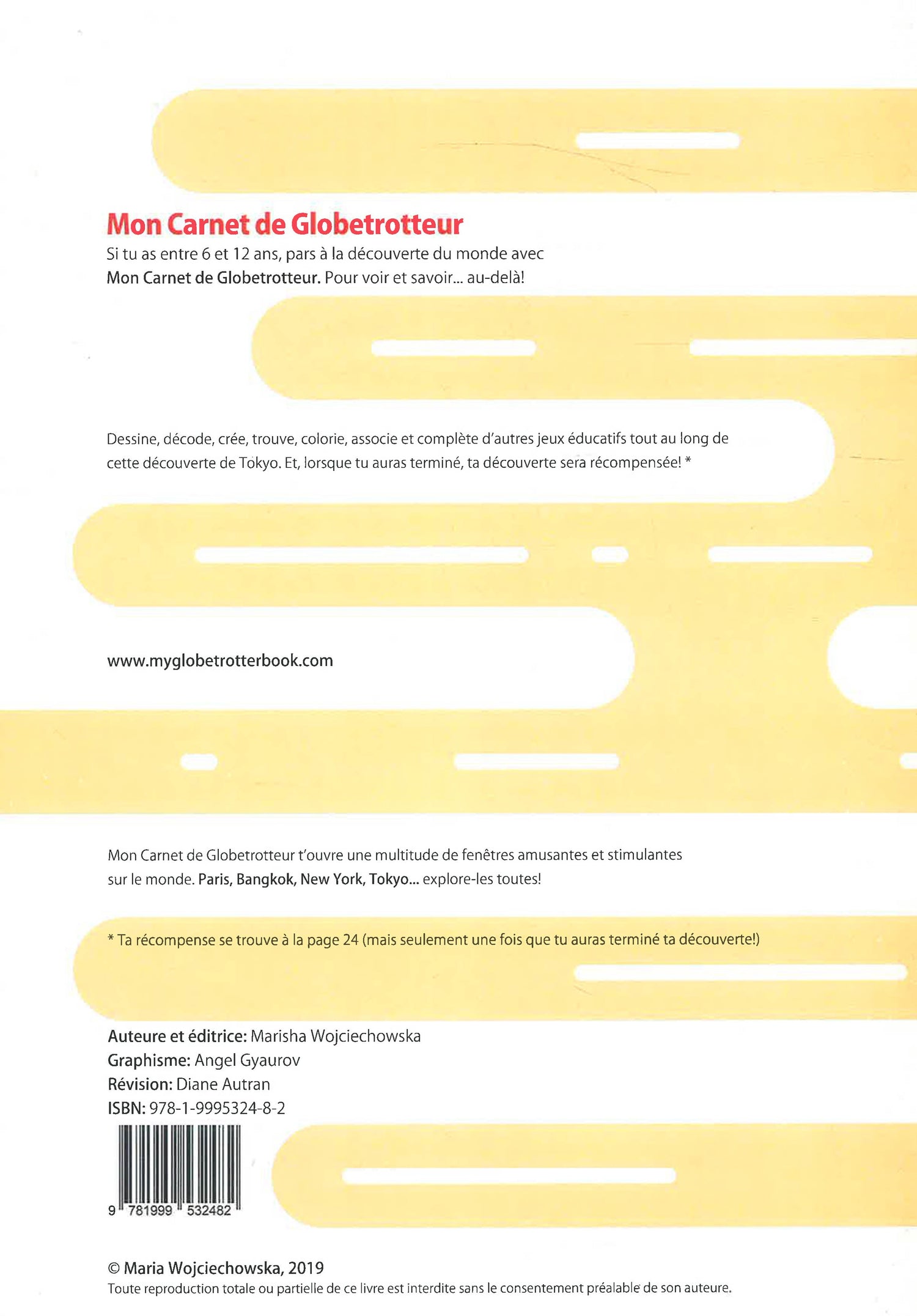 Le monde dans la paume des petites mains: livres d'activités pour les jeunes. 24 pages de jeux et de puzzles éducatifs et ludiques pour jeunes de 6 à 12 ans. Au fil des pages illustrées et vives en couleurs, on y explore culture et coutumes, un peu d'histoire, des sites d'intérêts, la nourriture locale, la langue du pays, et bien plus.Globetrotteur à Tokyo: Quelle est la différence entre un sanctuaire et un temple? Pratiquez l'écriture en caractères japonais. Trouvez les différences entre l'époque Edo et le Tokyo moderne. Dessinez un ninja. Trouvez des personnages de manga dans l'horizon de la ville.