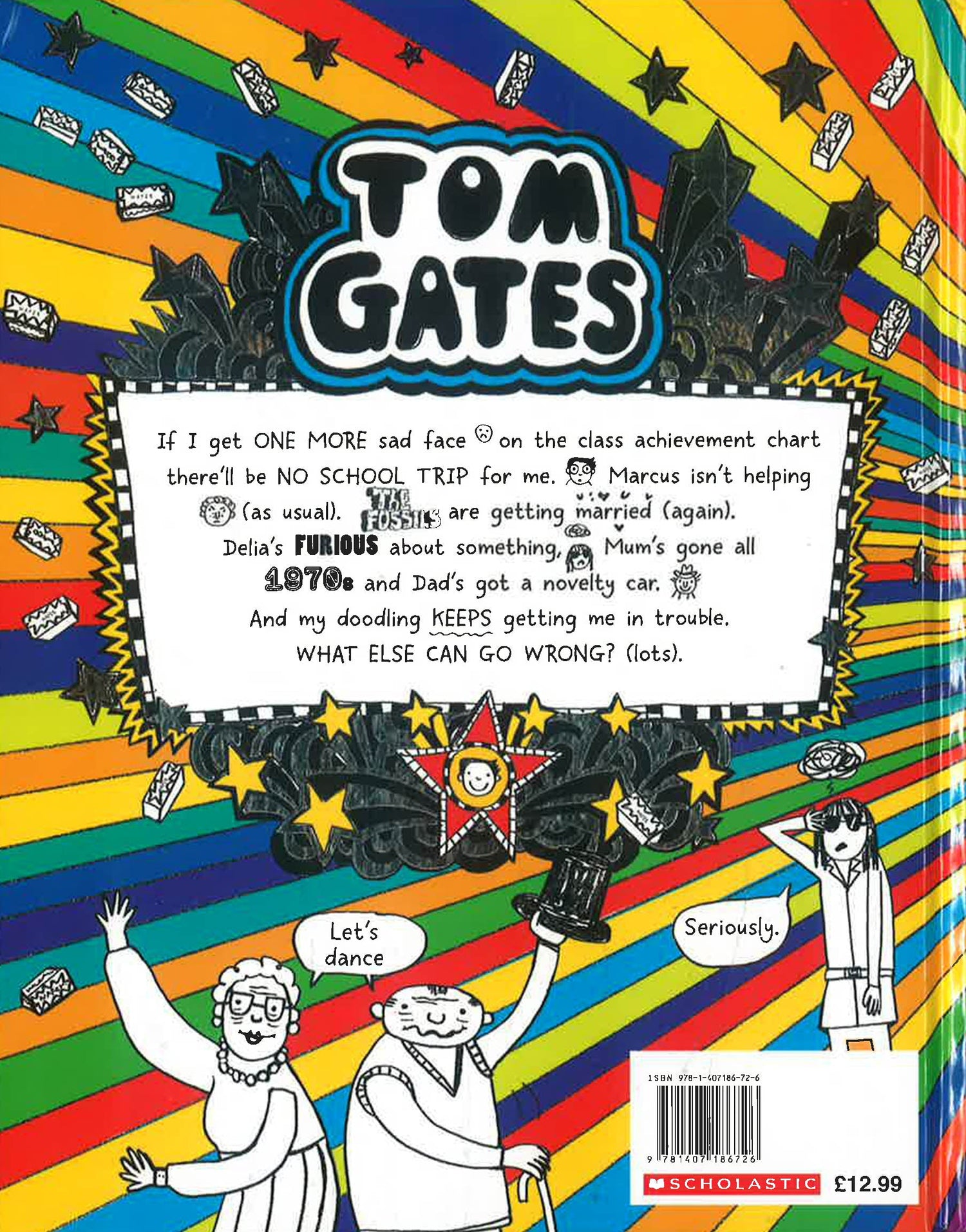 The seventeenth laugh-out-loud, fully illustrated Tom Gates adventure! Tom's doing everything possible to stay out of trouble but somehow he's got THREE sad faces :( :( :( on the school achievement chart! And getting another sad face means Mr Fullerman won't let him go on the SCHOOL TRIP! Moany Marcus Meldrew is making things worse and now Tom's annoyed his grumpy sister Delia. Can his best friend Derek help? Will Rooster the dog stop eating his homework? ABOUT THE SERIES: Written in diary form Full of Tom's doodles and pictures & his amazing sense of humour The Brilliant World of Tom Gates, was the winner of the Roald Dahl Funny Prize! Perfect gifts for boys & girls who love to laugh themselves silly The first series of The Brilliant World of Tom Gates won the Scottish BAFTA for Entertainment! Love Tom Gates? Don’t miss Liz Pichon’s spectacular Shoe Wars, a laugh-out-loud, gadget-packed adventure!