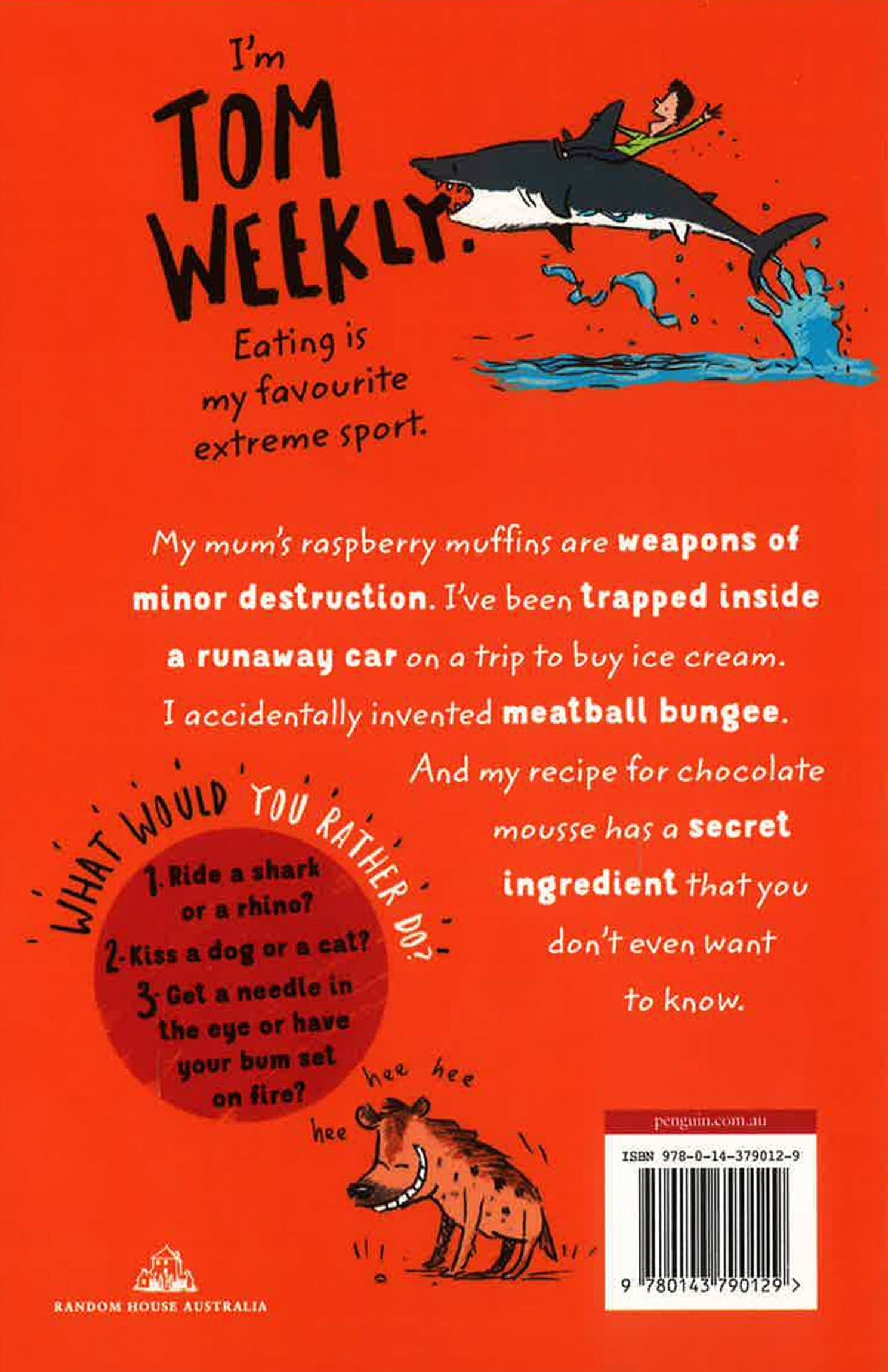 I'm Tom Weekly and eating is my favourite sport. My mum's raspberry muffins are weapons of minor destruction. I've been trapped inside a runaway car on a trip to buy ice cream. I accidentally invented meatball bungee. And my recipe for chocolate mousse has a secret ingredient that you don't even want to know. What would you rather do?