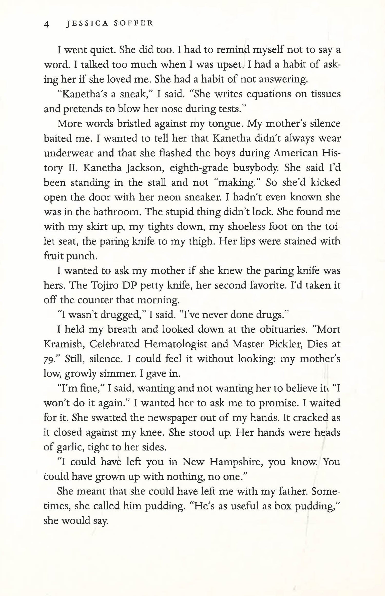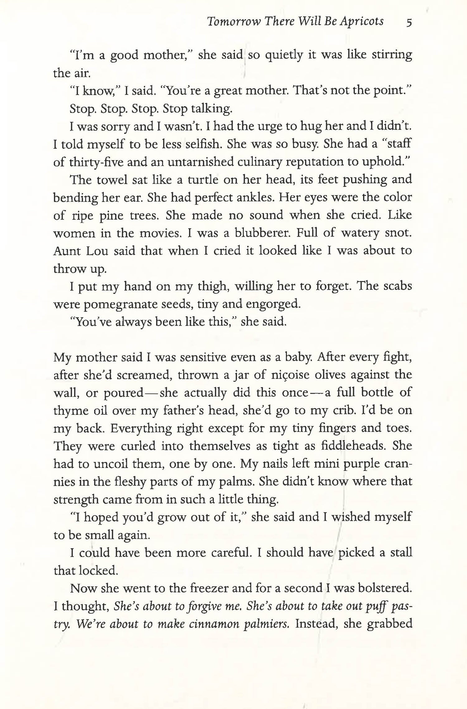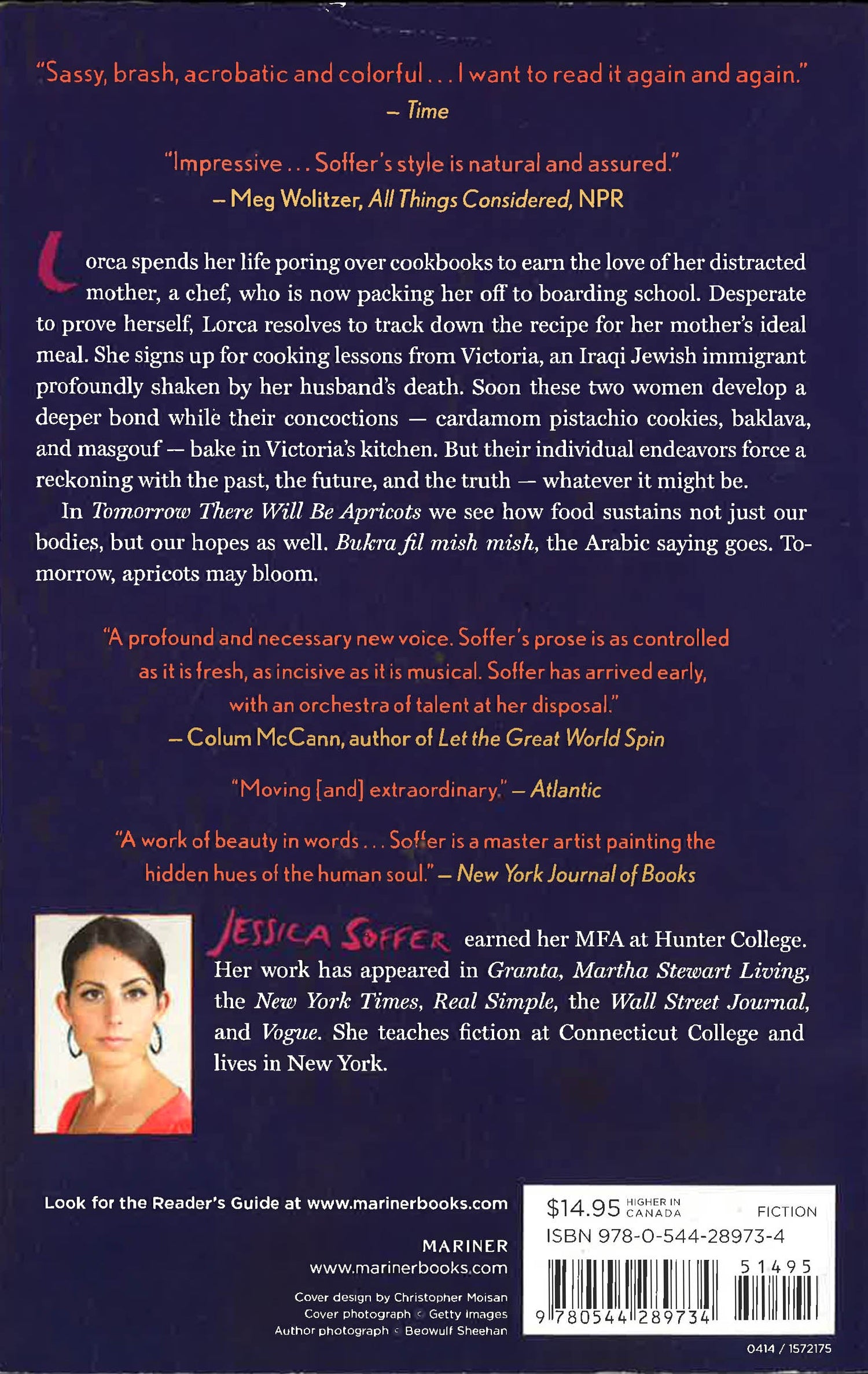 "Sassy, brash, acrobatic and colorful . . . I want to read it again and again." --Time "Impressive . . . Soffer's style is natural and assured." --Meg Wolitzer, All Things Considered, NPR Lorca spends her life poring over cookbooks to earn the love of her distracted mother, a chef, who is now packing her off to boarding school. Desperate to prove herself, Lorca resolves to track down the recipe for her mother's ideal meal. She signs up for cooking lessons from Victoria, an Iraqi-Jewish immigrant profoundly shaken by her husband's death. Soon these two women develop a deeper bond while their concoctions--cardamom pistachio cookies, baklava, and masgouf--bake in Victoria's kitchen. But their individual endeavors force a reckoning with the past, the future, and the truth--whatever it might be. In Tomorrow There Will Be Apricots we see how food sustains not just our bodies, but our hopes as well. Bukra fil mish mish, the Arabic saying goes. Tomorrow, apricots may bloom. "A profound and necessary new voice. Soffer's prose is as controlled as it is fresh, as incisive as it is musical. Soffer has arrived early, with an orchestra of talent at her disposal." --Colum McCann, author of Let the Great World Spin "Moving [and] extraordinary." --Atlantic "A work of beauty in words . . . Soffer is a master artist painting the hidden hues of the human soul." --New York Journal of Books