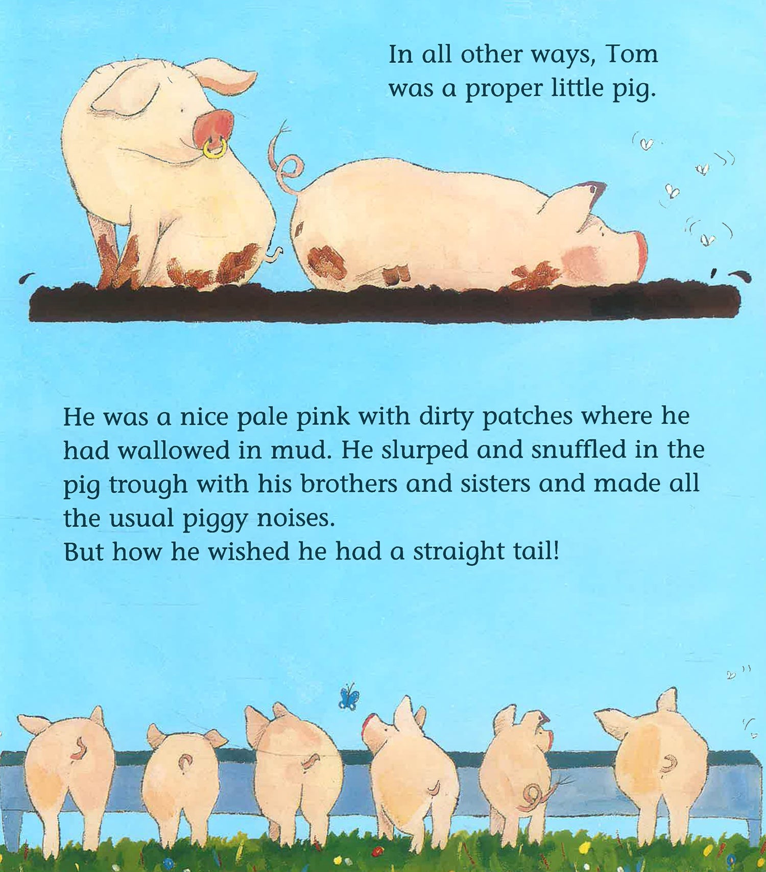 Tom has a curly tail like a rolled-up rubber band and he hates it! The little pig sets about straightening his ridiculous tail with the help of all his farmyard friends, but when at last Toms tail is exactly as he wants it to be, he finds himself in big trouble!
