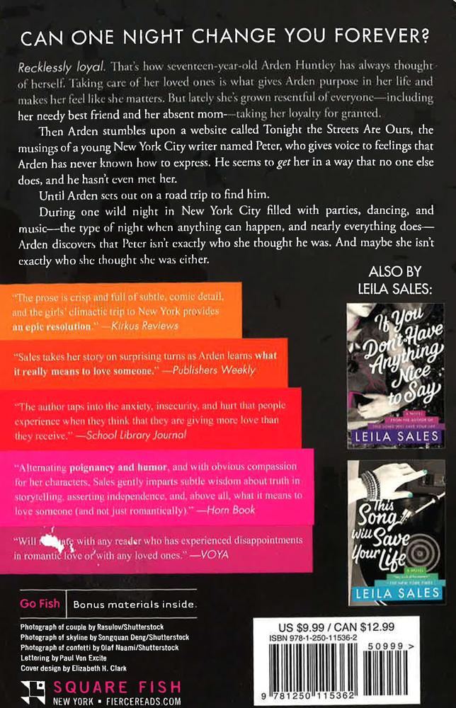 Then Arden stumbles upon a website called Tonight the Streets Are Ours, the musings of a young New York City writer named Peter, who gives voice to feelings that Arden has never known how to express. He seems to get her in a way that no one else does, and he hasn't even met her.