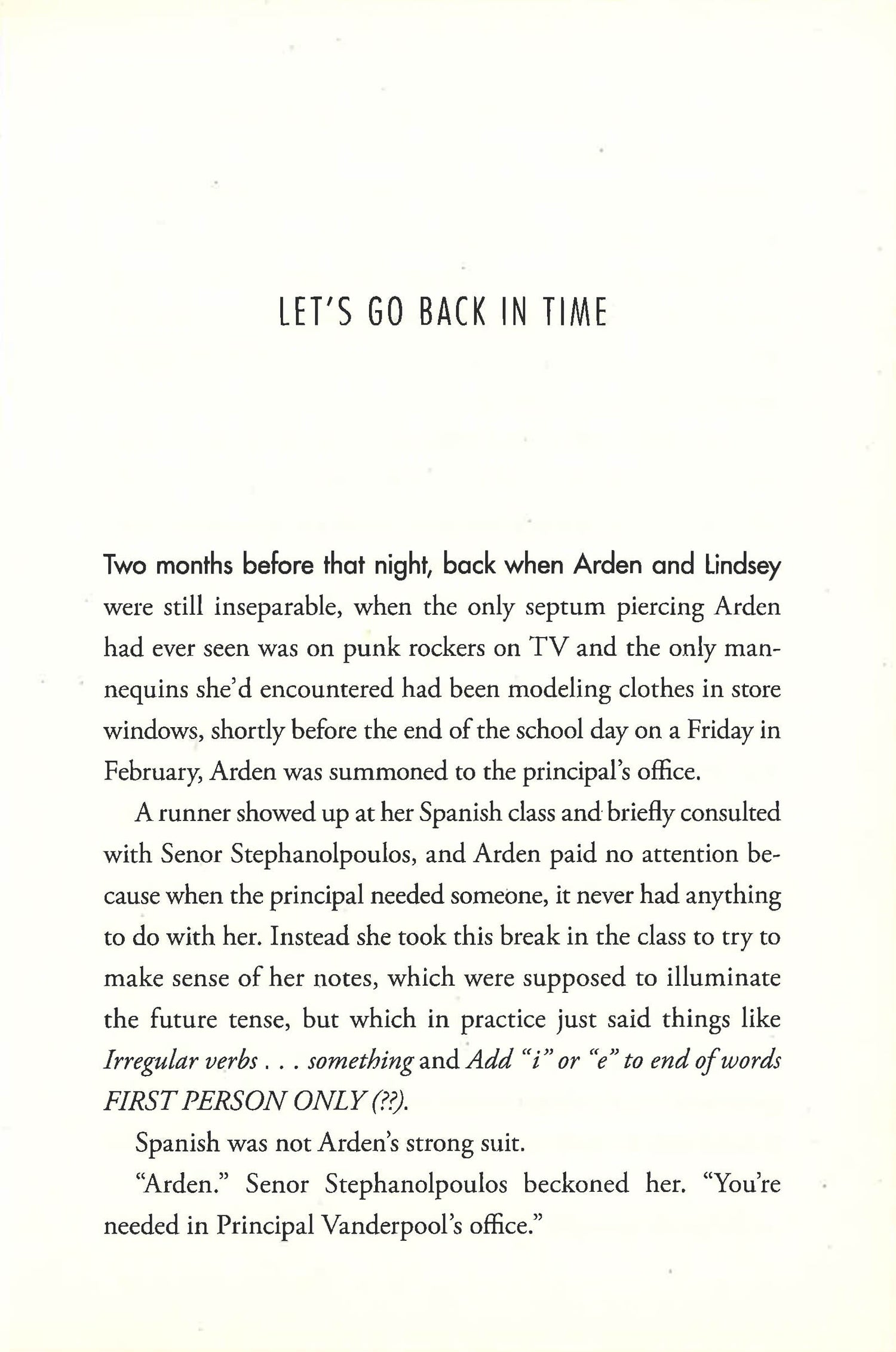 During one crazy night out in New York City filled with parties, dancing, and music--the type of night when anything can happen, and nearly everything does--Arden discovers that Peter isn't exactly who she thought he was. And maybe she isn't exactly who she thought she was, either.