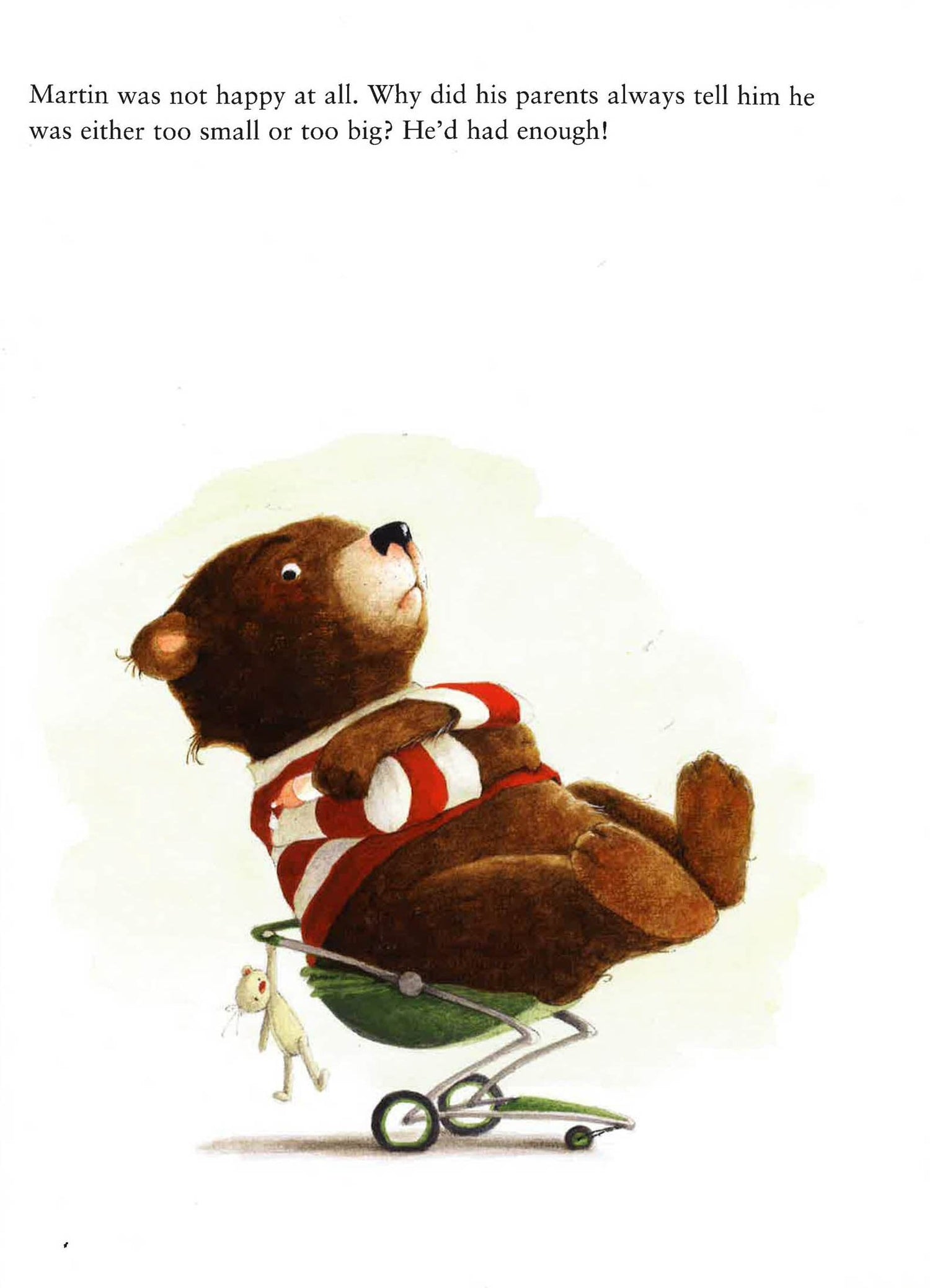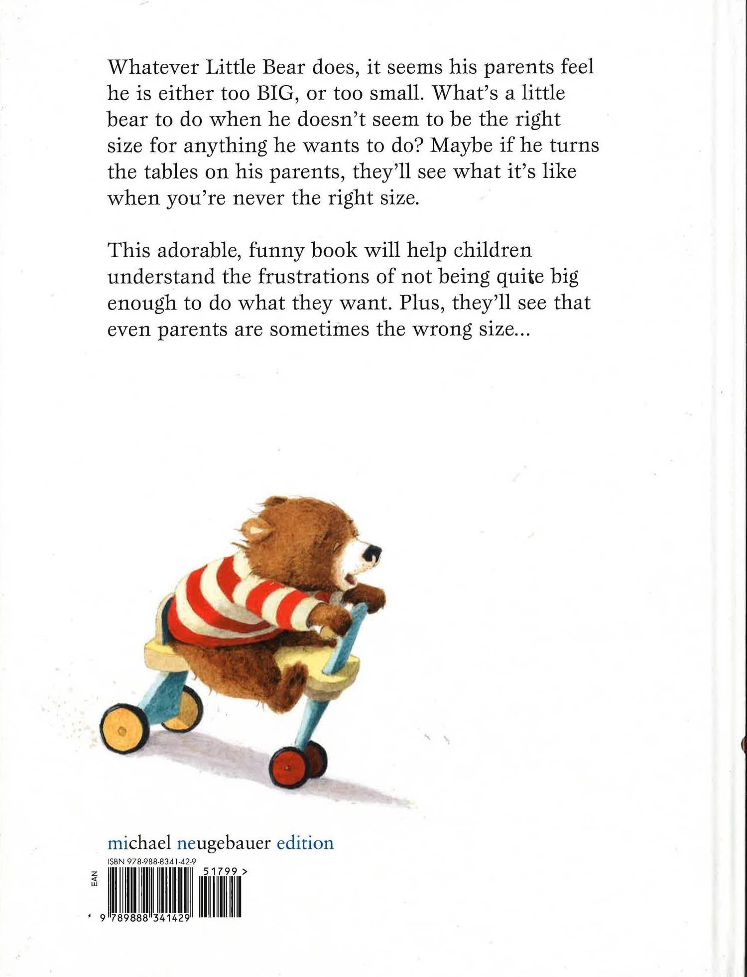 Why is it that Little Bear seems to be too small or too big for everything? Little Bear is excited to do so many things! He rushes into the kitchen to have his breakfast, but he finds he is too small to cut his food without Mama Bear's help. He is too big to nap in his little bed, but too small to reach Dad's cell phone on the table. Every child will relate to Little Bear's predicament, and laugh along with this touching, amusing tale.