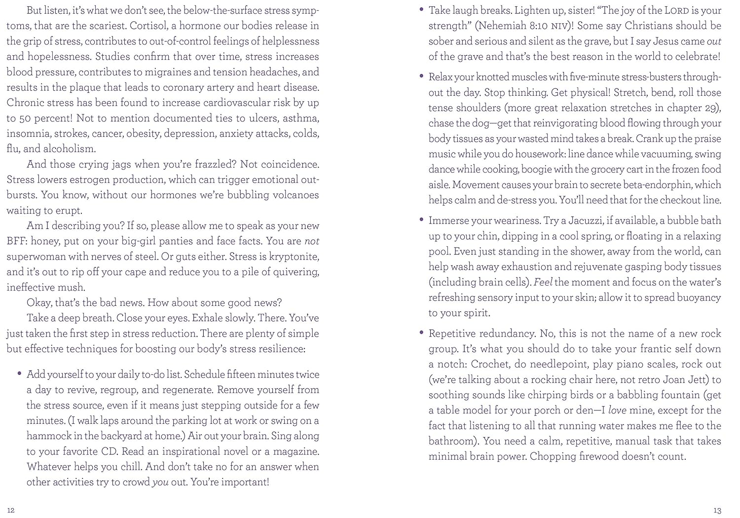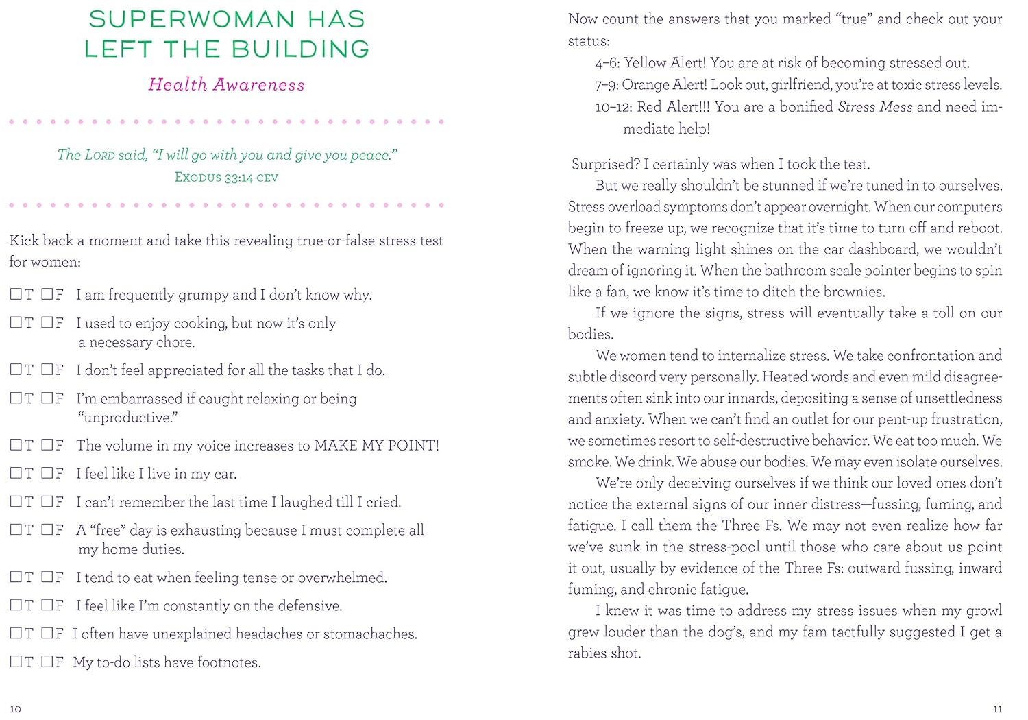 If you often find yourself struggling with the stresses of finances, health, career, relationships, self-image, or family, then this humor-filled volume is just what you need. With simple, practical tips for attaining the peace you crave--the peace that passes all understanding--you'll discover healing, refreshment, and revitalization for your spirit, body, and mind.