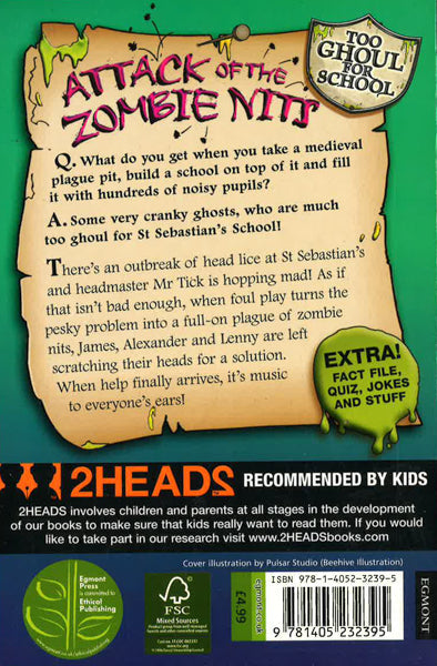St Sebastian's School in Grimesford is the pits. No, really - it is. Built on the boggy remains of a medieval plague pit, this once proud school's dodgy nineteenth-century foundations are causing it to slowly subside. Every year, it sinks a little further into the ground, and every year the ghosts of the plague victims underneath become more disgruntled. All they want is to rest in peace, but during term time all they hear is the clatter of hundreds of pairs of high school kids' feet overhead. The ghosts - egged on by their spooky ringleader, Edith Codd - decide to get their own back, and they're willing to play dirty. Really dirty. They swarm into the St Sebastian's sewer system and start to kick up a stink the only way they know how. Popping up through pipes and taps, they invade the school, morphing into monsters and zombies, performing possessions and hauntings, and generally causing as much mischief as in inhumanly possible. But the ghosts haven't reckoned on three friends in year seven; James, Alexander and Lenny. Together, the boys prevent a plague of zombie nits from turning everyone at St Sebastian's into the walking dead, save their school from an unusual invasion and finally thrash rival school St Mary's at football with a little help from a fiend.